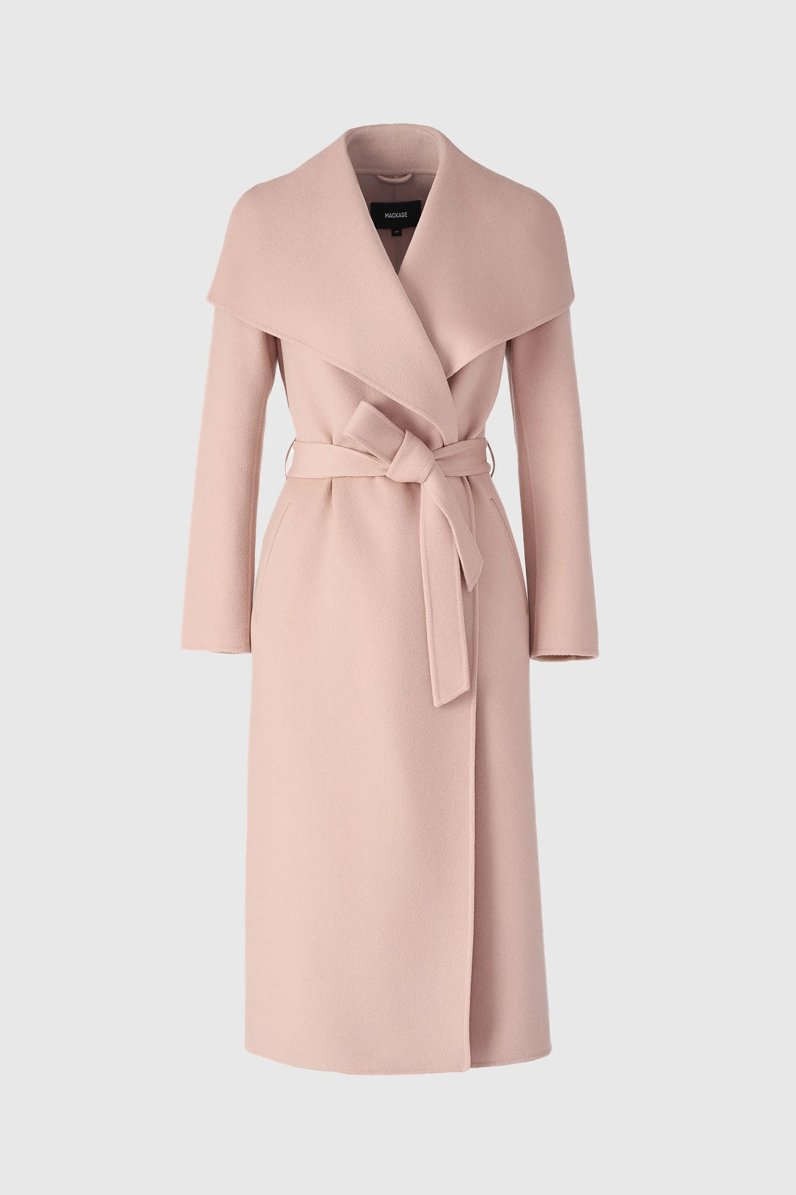 MAI-CN is a long wrap coat for women handmade from luxurious soft double-face wool. The fluid drape provides a relaxed-fit and unlined layer for maximum comfort in mild climates. The waterfall collar adds a sophisticated appeal while leather welting highlights the waist pockets and belt loops. DETAILS - Long wrap coat - Soft double-face wool - Handmade - Waterfall collar - Wool sash belt - (R) Leather and wool belt loops - Waist pockets with leather trim - Unlined - Relaxed fit SIZE & FIT - RELAXED – Loose fit for on the go comfort. - Designed to be worn with heavier layers. - The model is 5'11" (180 cm) and wears a size XS. - Length from shoulder to hem: 47 ½'' / 120 cm. COMPOSITION & CARE - Shell: 100% wool. Combo: 100% lamb leather. - Dry clean by leather specialist using oil-based solvent only. Do not use perchloroethylene.