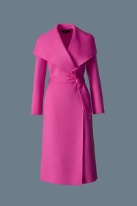 MAI-CN is a long wrap coat for women handmade from luxurious soft double-face wool. The fluid drape provides a relaxed-fit and unlined layer for maximum comfort in mild climates. The waterfall collar adds a sophisticated appeal while leather welting highlights the waist pockets and belt loops. - Long wrap coat - Soft double-face wool - Handmade - Waterfall collar - Wool sash belt - (R) Leather and wool belt loops - Waist pockets with leather trim - Unlined - Relaxed fit SIZE & FIT - RELAXED – Loose fit for on the go comfort. - Designed to be worn with heavier layers. - The model is 5'11" (180 cm) and wears a size XS. - Length from shoulder to hem: 47 ½'' / 120 cm. COMPOSITION & CARE INSTRUCTIONS - Shell: 100% wool. Combo: 100% lamb leather. - Dry clean by leather specialist using oil-based solvent only. Do not use perchloroethylene.