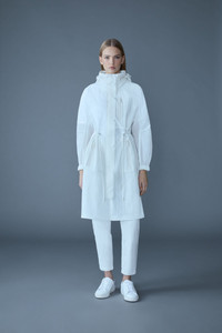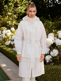 MAKAYLA is a lightweight ripstop, knee-length rain jacket crafted from recycled materials for sustainable style. Featuring a hidden hood inside the collar, water-resistant zippers, and a streamlined front placket with snaps for water-repellent coverage. An adjustable drawcord waist and elasticized cuffs enhance fit and comfort, while dual patch pockets provide practical functionality. Finished with tonal MACKAGE embroidery along the placket for an understated branded touch. DETAILS - Lightweight knee-length rain jacket - Hidden hood inside collar - Seam-sealed construction with water-resistant zippers - Adjustable drawcord waist and elastic cuffs - Dual patch pockets with silicone "MACKAGE" branding - Tonal MACKAGE embroidery along placket SIZE & FIT - RELAXED – Loose fit for on the go comfort. - Designed to be worn with heavier layers. - The model is 5'11" (180 cm) and wears a size S. - Coat length from shoulder to hem: 40 ¼'' / 103 cm. COMPOSITION & CARE - Shell: 75% recycled polyamide, 25% polyamide/ nylon. Waterproof, water-repellant & water-resistant. - Dry clean by a leather specialist using only oil-based solvent. Do not use perchloroethylene.