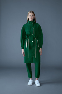 MAKAYLA is a lightweight ripstop, knee-length rain jacket crafted from recycled materials for sustainable style. Featuring a hidden hood inside the collar, water-resistant zippers, and a streamlined front placket with snaps for water-repellent coverage. An adjustable drawcord waist and elasticized cuffs enhance fit and comfort, while dual patch pockets provide practical functionality. Finished with tonal MACKAGE embroidery along the placket for an understated branded touch. DETAILS - Lightweight knee-length rain jacket - Hidden hood inside collar - Seam-sealed construction with water-resistant zippers - Adjustable drawcord waist and elastic cuffs - Dual patch pockets with silicone "MACKAGE" branding - Tonal MACKAGE embroidery along placket SIZE & FIT - RELAXED – Loose fit for on the go comfort. - Designed to be worn with heavier layers. - The model is 5'11" (180 cm) and wears a size S. - Coat length from shoulder to hem: 40 ¼'' / 103 cm. COMPOSITION & CARE - Shell: 75% recycled polyamide, 25% polyamide/ nylon. Waterproof, water-repellant & water-resistant. - Dry clean by a leather specialist using only oil-based solvent. Do not use perchloroethylene.