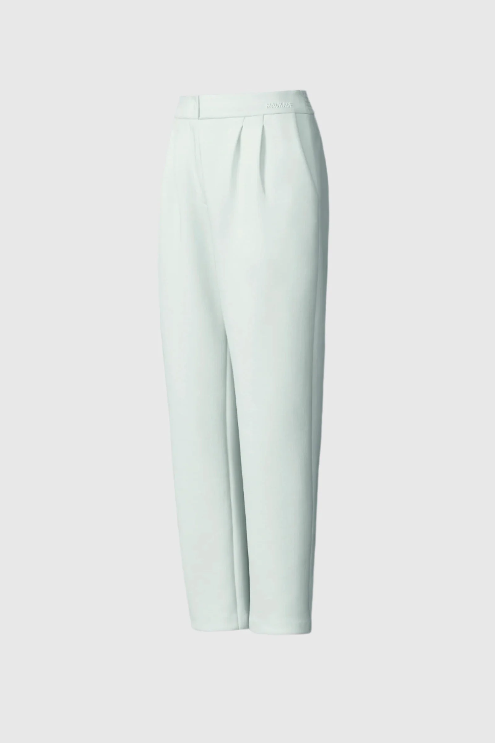 MARIANA is a refined pair of pleated pants crafted from double-face jersey, designed for everyday versatility. These pants feature an elasticized back waist for ease of movement and a tailored fit. Functional details like slash pockets and a back welt pocket with MACKAGE silicone branding complete the modern design. DETAILS - Double-face jersey pleated pants - Center front closure with zipper, placket, and snaps - Elasticized back waist detail - Slash pockets - Back welt pocket - MACKAGE silicone branding SIZE & FIT - SEMI-FITTED – Follows your body’s shape for ease of movement. - Designed tolayer with a fitted top or light sweater. - The model is 5'11" (180 cm) and wears a size S. - Inseam: 28'' / 71 cm. COMPOSITION & CARE - Shell: 53% cotton, 47% polyester. Lining: 100% cotton. - Wash in domestic or commercial machine in water not exceeding 30°C at normal setting. Wash inside out. Use mild detergent. Wash with similar colors. Remove immediately after washing. Do not tumble dry. Iron with or without steam by hand, or press on commercial equipment, at low temperature (not exceeding 110°C). Do not bleach. Dry clean using oil-based solvent only. Do not use perchloroethylene.