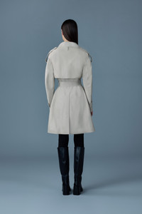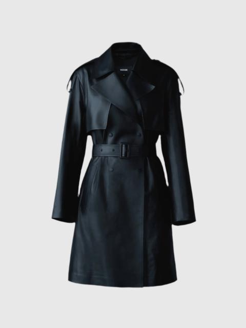 MEDORA is a double-breasted three-quarter coat crafted from high-quality leather. The wide notched lapel, epaulettes, and rain shedder add confident lines to the straight fit. Cinch the adjustable belt and turn up the collar with the throat latch for windy days. A timeless piece with standout style, perfect for layering. - Three-quarter leather coat - Throat latch with snaps - Wide notched lapel collar - Double-breasted closure with exposed snaps - Adjustable belt with buckle - Non-adjustable sleeve tab with snaps - Edge painted finishing - Vent at center back - Welt pockets at waist - Straight-fit - Unlined SIZE & FIT - STRAIGHT – Classic fit allowing comfort and style. - Designed to be worn with heavier layers. - For heavier layering, we recommend sizing up. - The model is 5'11" (180 cm) and wears a size XS. - Coat length from shoulder to hem: 36.5'' / 93 cm. COMPOSITION & CARE INSTRUCTIONS - Shell: 100% lamb leather. - Dry clean by leather specialist using oil-based solvent only. Do not use perchloroethylene.
