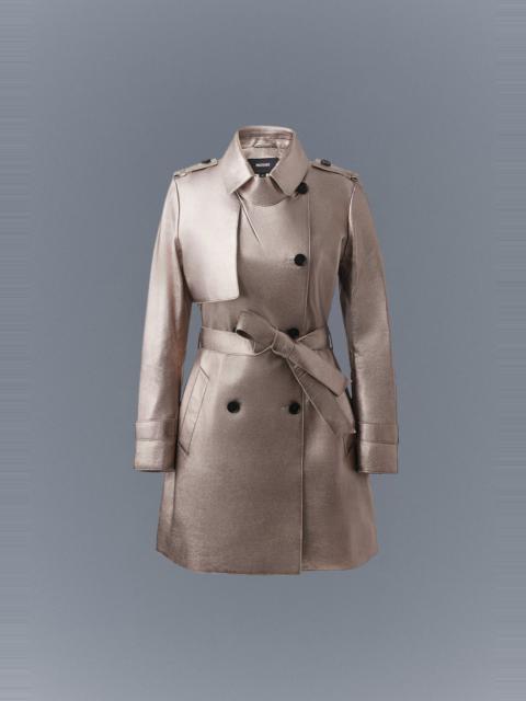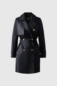 MELY is a double-breasted long trench coat crafted from premium leather. Fully lined with a windproof shell for brisk autumn mornings and as a top layer for colder weather. Epaulettes, detachable throat latch, and edge-painted leather throughout exude refined tailoring. On windy days turn up the extended spread collar and cinch the adjustable belt buckle. Welt pockets, rain shedder at front and back, and adjustable sleeve tabs add utilitarian detail to the long relaxed silhouette. A statement piece with endless layering options. DETAILS - Long leather trench coat - Double-breasted button closure - Wide notched lapel collar - Detachable throat latch with buttons - Left-sided rain shedder - Removable sash belt - Adjustable sleeve tabs with buttons - Welt waist pockets - Vent at center back - Epaulette shoulders - Fully lined - Edge painted detailing - Relaxed fit SIZE & FIT - RELAXED – Loose fit for on the go comfort. - Designed to be worn with heavier layers. - The model is 5'11" (180 cm) and wears a size XS. - Length from shoulder to hem: 35'' / 89 cm. COMPOSITION & CARE - Shell: 100% lamb leather. Lining: 100% viscose. - Dry clean by leather specialist using oil based solvent only. Do not use perchloroethylene.