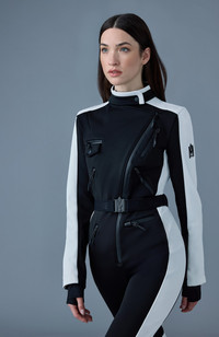 MIAKIM is a one-piece ski suit with a signature fitted silhouette and made from techno fleece for superior range of motion. Water resistant, repellent, windproof and washable, it features padded detailing throughout, stand collar, and branded elastic belt. The asymmetrical zipper closure adds striking lines to the sleek silhouette. Optimal ski performance with stylish modern detailing. DETAILS - Technical ski suit with padded knees - Techno Fleece fabric - Water resistant, repellent and windproof - Scuff guard at inseam hem - Elastic belt with buckle - Multiple waterproof zipper pockets at front - Active storm cuff with thumb hole - Zipper opening at bottom hem for ski boots - Invisible zipper on sleeve for ski pass - Snap closure at stand collar - Asymmetrical zip front closure - Signature M logo at sleeve - Fitted cut - Machine washable - Down to -15ºC SIZE & FIT - FITTED – Our signature fit, closest to the body. - Designed to be worn with light layers, all while keeping you warm. - For heavier layering, we recommend sizing up. - The model is 5'11" (180 cm) and wears a size XS. - Inseam length: 31'' / 79 cm. COMPOSITION & CARE - Shell: 82% polyamide/nylon, 18% elastane/spandex. Combo: 82% polyester, 18% elastane/spandex. Lining: 82% recycled nylon, 18% elastane/spandex. Water-repellent and water-resistant. - Close zippers. Remove all removable trims. Wash inside out. Wash in domestic machine in water not exceeding 30°C at delicate gentle setting. Use mild detergent. Wash with similar colors. Remove immediately after washing. Do not soak. Tumble dry at low heat, until fully dried. Do not wet-clean. Do not bleach. Do not wring. Do not iron or press. Dry clean using oil-based solvent only. Do not use perchloroethylene.
