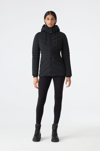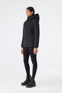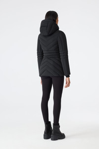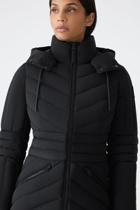 NADIA-NFZ is a fitted down jacket crafted from a stretch technical fabric for enhanced comfort and mobility. Engineered for performance in cold weather, it features GRS-certified recycled down, and a storm visor with adjustable drawcord for added protection. A removable hood, rib knit cuffs, and chevron quilting complete this modern outerwear essential. Finished with signature “M” sleeve logo and branded drawcord details. DETAILS - Stretch down jacket - GRS certified recycled down - Chevron quilted body and sleeves - 2-way center front zipper closure - Removable hood - Adjustable storm visor with drawcord - Rib knit cuffs - Waist pockets with zippers - Inner welt pocket with zipper - “M” logo on left sleeve - Piping detail - Fully lined - “MACKAGE” branded drawcord at hood - Fitted silhouette - Temperature rating: -15°C SIZE & FIT - FITTED – Our signature fit, closest to the body. - Designed to be worn with light layers, all while keeping you warm. - For heavier layering, we recommend sizing up. - The model is 5'11" (180 cm) and wears a size S. - Coat length from shoulder to hem: 27.5'' / 133 cm. COMPOSITION & CARE - Shell: 82% recycled nylon, 18% elastane/spandex. Lining: 82% recycled nylon, 18% elastane/spandex. Filling: 90% recycled down, 10% recycled feathers. Water-repellent, water-resistant. - Close zippers. Remove fur. Remove all removable trims. Wash inside out. Wash in domestic machine in water not exceeding 40°c, at normal setting. Use mild detergent. remove immediately after washing. Do not soak. Tumble dry low heat with tennis balls, until fully dried (1to 3 hours). Do not wet-clean. Do not bleach. Do not wring. Do not iron or press. Dry clean using oil based solvent only. Do not use perchloroethylene.