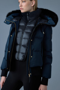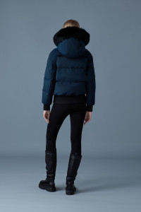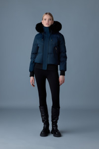 NEFI-BX is a medium-down bomber jacket for women with our proprietary bonded Nordic Tech Shell. Finely tailored and engineered to withstand harsh temperatures, it boasts a removable lustrous down hooded bib with a detachable blue fox fur trim. Double-entry pockets with insulated lining and rib-knit trims add to the highly-functional yet distinguishable style. Elevate your winter style while staying warm in sub-zero temperatures. DETAILS - Medium-down bomber jacket - 800+ traceable RDS certified duck down - Fend off extreme cold: protection down to -20ºC - 2-layer Nordic Tech shell with TPU membrane - Removable bib with sustainable fur-lined hood - Detachable fur trim - Centre front zip closure - Storm placket with hidden snaps - Insulated dual-entry waist pockets with zip flap - Rib knit cuffs and hem - Signature M logo on left sleeve - Relaxed fit SIZE & FIT - RELAXED – Loose fit for on the go comfort. - Designed to be worn with heavier layers. - The model is 5'11" (180 cm) and wears a size XS. - Coat length from shoulder to hem: 24'' / 61 cm. COMPOSITION & CARE - Shell: 59% polyamide/nylon, 41% polyester. Lining: 100% recycled nylon. Filling: 90% duck down, 10% feathers. Fur: 100% Finland blue fox. Water-repellent and water-resistant. - Dry clean by leather specialist using oil-based solvent only. Do not use perchloroethylene.