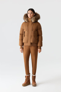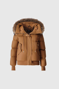 NEFI-F is a medium-down bomber jacket for women with our proprietary bonded Nordic Tech Shell. Finely tailored and engineered to withstand harsh temperatures, it boasts a removable lustrous down hooded bib with a detachable fur trim. Double-entry pockets with insulated lining and rib-knit trims add to the highly-functional yet distinguishable style. Elevate your winter style while staying warm in sub-zero temperatures. DETAILS - Medium-down bomber jacket - 800+ traceable RDS certified duck down - Fend off extreme cold: protection down to -20ºC - 2-layer Nordic Tech shell with TPU membrane - Removable bib with sustainable fur-lined hood - Detachable fur trim - Centre front zip closure - Storm placket with hidden snaps - Insulated dual-entry waist pockets with zip flap - Rib knit cuffs and hem - Signature M logo on left sleeve - Relaxed fit SIZE & FIT - RELAXED – Loose fit for on the go comfort. - Designed to be worn with heavier layers. - The model is 5'11" (180 cm) and wears a size XS. - Length from shoulder to hem: 23 ¾'' / 60 cm. COMPOSITION & CARE - Shell: 59% polyamide/nylon, 41% polyester. Combo: 43% polyamide/nylon, 43% wool, 12% polyester, 2% elastane/spandex. Lining: 100% recycled nylon. Filling: 90% duck down, 10% feathers. Fur: 100% Finland raccoon. Water-repellent & Water-resistant. - Dry clean by leather specialist using oil-based solvent only. Do not use perchloroethylene.