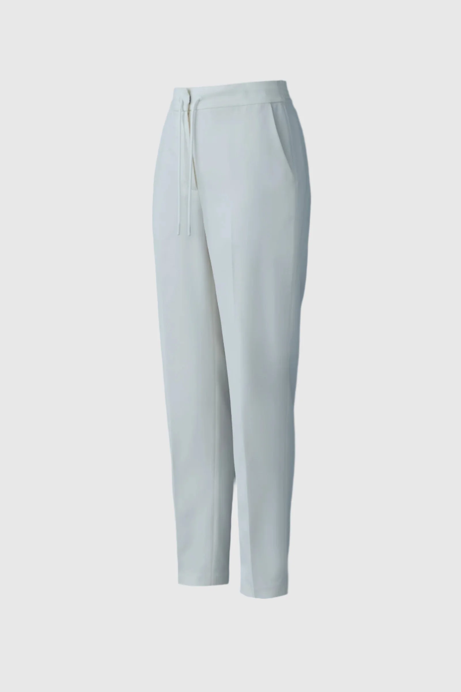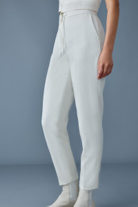 NIDYA are straight-leg wool pants crafted from soft wool. Design-forward with pleats at front and slash pockets at waist. Half-lined with center front fly closure zipper and hook & bar fastening for a comfortable fit. Modern and effortless ready-to-wear. DETAILS - Pleated wool pants - Inseam pocket - Half-lined - Elasticized waistband - Adjustable drawcord at waist - Back welt pocket - Slash pockets - Center front fly closure with zipper and hook & bar fastening SIZE & FIT - The model is 5'11" (180 cm) and wears a size S. - Inseam length: 28'' / 71 cm. COMPOSITION & CARE - Shell: 100% wool. Lining: 52% polyester, 48% viscose. - Dry clean by leather specialist using oil-based solvent only. Do not use perchloroethylene.