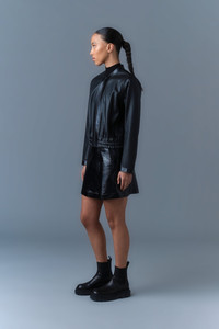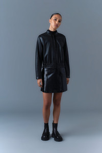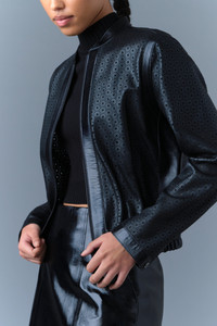 NOELIA is leather jacket with perforated and leather tape detailing throughout. The regular fit is defined by the elasticized waistband and adjustable cuffs with snap fastening. Stand collar and center front zip closure add subtle accents while the edge-painted finish show elevated tailoring. A streamlined design with standout style, perfect for layering through the year. - Perforated leather jacket - Center front zipper closure - Adjustable sleeve cuffs with snap closure - Elasticized leather waistband - Leather tape detailing - Edge-painted finishing - Unlined SIZE & FIT - REGULAR – Classic fit allowing comfort and style. - Designed to be worn with heavier layers. - The model is 5'11" (180 cm) and wears a size XS. - Length from shoulder to hem: 20 ½'' / 52 cm. COMPOSITION & CARE INSTRUCTIONS - Shell: 100% sheep leather. Combo Shell 1: 100% lamb leather. - Dry clean by leather specialist using oil based solvent only. Do not use perchloroethylene.