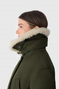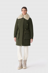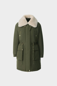NOVA is a 3-in-1 long down coat featuring a removable insulated inner layer and detachable shearling collar, designed for adaptable warmth. Engineered for extreme cold down to -20°C, it features articulated sleeves, multiple functional pockets, and quilted construction for targeted warmth. The outer shell is secured with a 2-way zipper and snap placket, while the interior polyfill liner provides added insulation and versatility. Utility meets elevated style in this adaptable silhouette built for performance and comfort. DETAILS - 3-in-1 down coat with removable inner jacket - Temperature rating: -20°C - Relaxed fit - Recycled materials / GRS-certified recycled down - Water-repellent and resistant - Down filled - 2-way center front zipper closure - Removable shearling collar - Adjustable collar tabs with buckles - Adjustable sleeve cuff with snap - Adjustable drawcord at waist - Articulated sleeves - Rib knit cuffs - Underarm eyelets for ventilation - Patch pockets with flaps and side entry - Welt pocket with snap closure - “MACKAGE” silicone logo on outer patch pocket - Placket with hidden snaps and PU snap tape - Center front zipper closure - Polyfill diamond quilting - Inner welt pocket with zipper - Patch pockets SIZE & FIT - RELAXED – Loose fit for on the go comfort. - Designed to be worn with heavier layers. - The model is 5'11" (180 cm) and wears a size S. - Coat length from shoulder to hem: 34.75'' / 121 cm. COMPOSITION & CARE - Shell: 100% recycled polyester. Lining: 100% recycled polyester. REMOVABLE Lining. 100% recycled nylon. Filling: 90% recycled down, 10% recycled feathers. Water-repellant, water-resistant. - Outer jacket: Dry clean by leather specialist using oil based solvent only. Do not use perchloroethylene. - Removable liner: Close zippers. Remove fur. Remove all removable trims. Wash inside out. Wash in domestic machine in water not exceeding 40°c, at normal setting. Use mild detergent. remove immediately after washing. Do not soak. Tumble dry low heat with tennis balls, until fully dried (1to 3 hours). Do not wet-clean. Do not bleach. Do not wring. Do not iron or press. Dry clean using oil based solvent only. Do not use perchloroethylene.