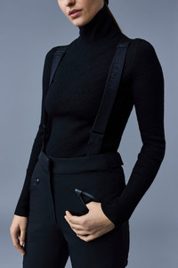 NYOMI is a ski pant for women with two-way stretch for ease of movement. Crafted from a water resistant, repellent two-layer fabric with a breathable membrane, it features snow gaiters, a scuff guard and removable suspenders for snowproof protection. Adjustable velcro waist tabs, an elasticized cuffs and a zip opening at the bottom hems ensure optimal fit and sleek slopestyle. DETAILS - Ski pant - Adjustable and removable suspenders - Two-layer fabric with four-way stretch - Water resistant and repellent - Windproof shell - Snow gaiters - Scuff guard at inseam hem - Pockets with zippers - Water resistant zipper - Adjustable velcro waist tabs - Zipper opening at bottom hem - Machine washable SIZE & FIT - SEMI-FITTED – Follows your body’s shape with ease. - Designed to be worn with light layers. - The model is wearing a size XS - Inseam: 30.25'' / 76.835 cm. COMPOSITION & CARE - Shell : 84% polyamide/nylon, 16% elastane/spandex. Lining : 82% polyamide/nylon, 18% elastane/spandex. Filling (polyfil): 100% polyester. Water-repellent & water-resistant. - Close zippers. Remove leather zipper puller. Wash inside out. Wash in domestic or commercial machine in water not exceeding 40°C, at normal setting. Use mild detergent. Remove immediately after washing. Tumble dry low heat with tennis balls, until fully dried (1 to 3 hours). Do not soak. Do not wet-clean. Do not bleach. Do not wring. Do not iron or press. Do not dry clean.
