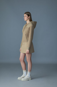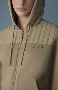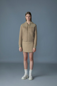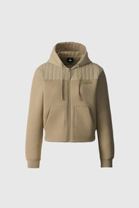 SEQUOIA is a mixed-media top made from double face jersey and insulated with GRS-certified recycled down for superior warmth. The design features a vertically quilted hood, back and front yoke for eye-catching detailing. Rib-knit cuffs and hem ensure a warm fit, while kangaroo pockets offer ample storage and coverage for hands. Partly lined for inter-seasonal wear. DETAILS - Mixed-media full-zip top - Vertical quilting at hood and front yoke, and back - Rib knit cuffs and hem - Center front zipper closure - kangaroo pockets - 'MACKAGE' silicone branding on chest - Partly lined SIZE & FIT - REGULAR – Classic fit allowing comfort and style. - Designed to be worn with heavier layers. - The model is 5'11" (180 cm) and wears a size S. - Coat length from shoulder to hem: 20'' / 51 cm. COMPOSITION & CARE - Shell: 53% cotton, 47% polyester. Combo shell 1: 82% recycled nylon, 18% elastane/spandex. Combo: 72% polyamide/ nylon, 27% polyester, 1% elastane/spandex. Lining: 100% cotton. Filling: 90% GRS-certified down, 10% feathers. - Wash in domestic or commercial machine in water not exceeding 30°C at normal setting. Wash inside out. Use mild detergent. Wash with similar colors. Remove immediately after washing. Do not tumble dry. Iron with or without steam by hand, or press on commercial equipment, at low temperature (not exceeding 110°C). Do not bleach. Dry clean using oil-based solvent only. Do not use perchloroethylene.