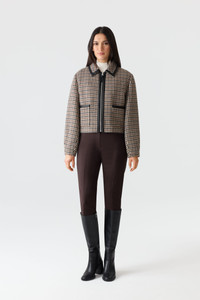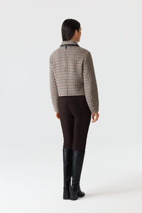 SOLANA-HT is a short jacket crafted from a heritage plaid wool blend. Fully lined for structure and comfort, it features a center front zipper closure detailed with luxe leather tape. Balloon sleeves add subtle volume, while a shirt collar and bold patch pockets lend tailored definition to the relaxed silhouette. DETAILS - Wool blend plaid short jacket - Fully lined - Center front zipper closure with leather tape - Balloon sleeves - Shirt collar - Patch pockets - Leather tape detailing - Relaxed fit SIZE & FIT - SEMI-FITTED – Follows your body’s shape with ease. - Designed to be worn with light layers. - The model is 5'11" (180 cm) and wears a size S. - Coat length from shoulder to hem: 19.75'' / 91 cm. COMPOSITION & CARE - Shell: 80% wool, 20% polyester. Lining: 96% polyester, 4% elastane/spandex. - Dry clean by leather specialist using oil based solvent only. Do not use perchloroethylene.