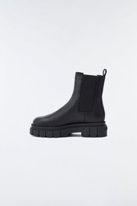 STORM is an ankle-high winter boot for women with a Chelsea silhouette and lined in plush shearling. The sustainable (R) Leather upper is anchored by a lightweight block heel lug sole. Expertly designed for warmth with a soft shearling lining, elastic panels and sleek lines ensure form-fitting comfort. A reimagined icon handcrafted for winterproof protection. DETAILS - Lightweight pull-on Chelsea (R) Leather winter boot - Deep Cold: Down to -20°C - Chunky rubber lug sole with bifurcated heel - Rounded toe silhouette - Shearling lining - Elastic side gussets for comfort - Sustainable (R) Leather upper - Backstay with easy-pull tab - Contrast lettermark on heel - Water resistant and repellent - Handcrafted in Italy - Performance tested for Canadian winters COMPOSITION & CARE - Shell: 100% cow leather. Sole: 100% rubber. Lining: 100% sheep leather. Water-resistant. - Wash gently by hand