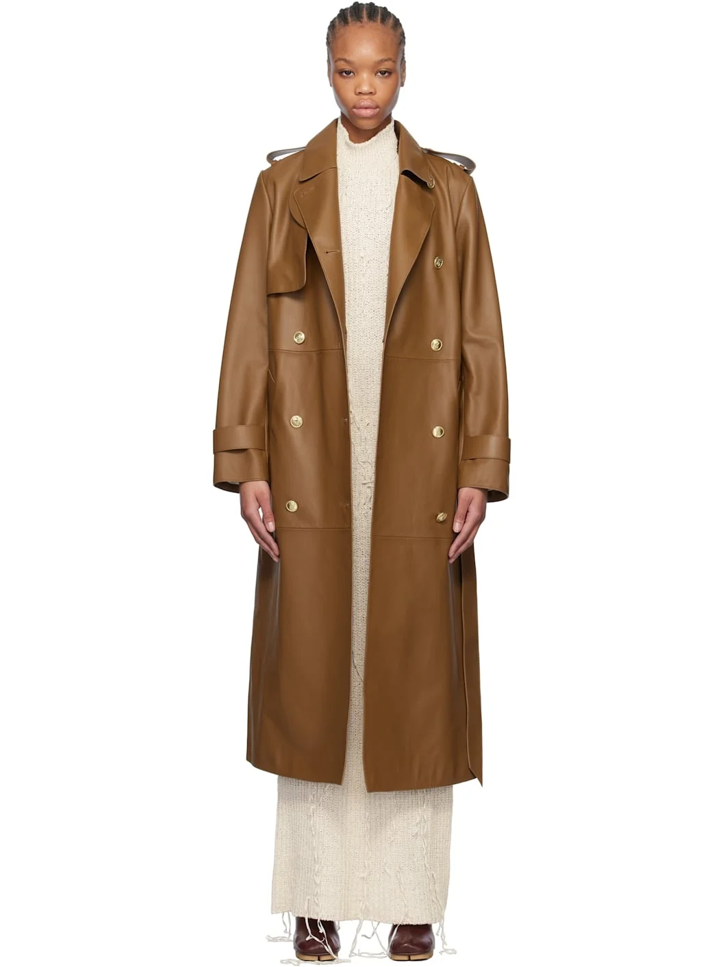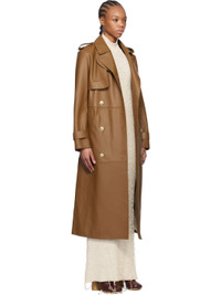 Relaxed-fit grained lambskin coat. - Notched lapel - Detachable throat guard at collar - Double-breasted button closure - Storm flap at chest and back - Belt loops and detachable self-tie belt - Welt pockets - Epaulets - Adjustable button tab at cuffs - Central vent at back hem - Full twill lining - Logo-engraved gold-tone hardware Supplier color: Earth brown
