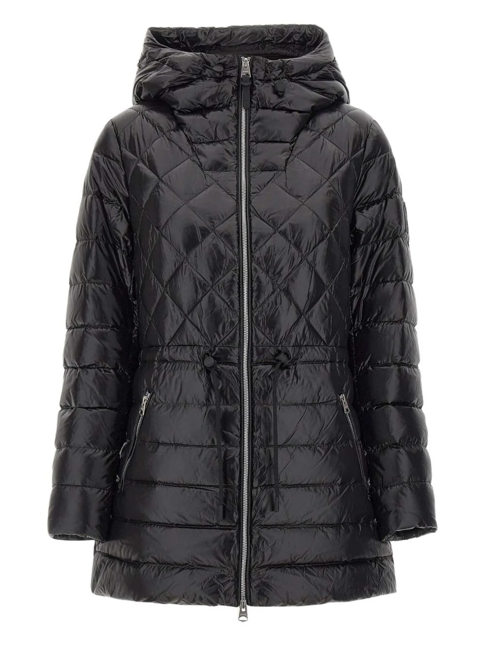 Tooky diamond-quilted hooded coat Highlights - Black - Diamond quilting - Fixed hood - Two-way zip fastening - Waist drawcord - Front zip pockets Imported Composition Lining: Recycled Nylon 100%, Recycled Down 90%, Recycled Feather 10% Outer: Recycled Nylon 100% Washing instructions Read Manufacturer Guidelines
