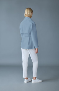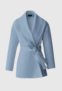 TYRA is a double-face wool wrap jacket with a robe silhouette and shawl collar. Expertly handmade and tailored to a relaxed fit, a sustainable leather and wool sash belt details the drop shoulder tie-front style. Ultra soft and unlined for a fluid drape. Modern and chic, a new classic to pair with everything. DETAILS - Double-face wool robe jacket - Handmade tailoring - Shawl collar - Tie-front silhouette - Drop shoulders - Sustainable leather and wool sash belt - Tonal belt loops - Welt waist pockets - Side slits - Unlined for fluid drape - Relaxed fit for on-the-go comfort SIZE & FIT - RELAXED – Loose fit for on the go comfort. - Designed to be worn with heavier layers. - The model is 5'11" (180 cm) and wears a size XS. - Length from shoulder to hem: 30'' / 76 cm. COMPOSITION & CARE - Shell: 100% wool. Combo Shell 1: 100% lamb leather. - Dry clean by leather specialist using oil based solvent only. Do not use perchloroethylene.