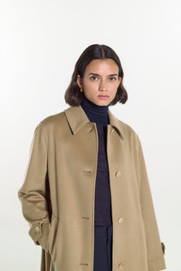 The Banton Cashmere Coat is Mackintosh's ladies signature Banton model. Its beautifully gentle A-line silhouette offers a timeless design that transcends trends. This piece is crafted from Loro Piana's finest 100% cashmere fabric, exuding a luxurious aura. Made in: Japan Fabric: Loro Piana Rain System 100% Cashmere Attributes: Water resistant. Dust resistant. Stain resistant Detailing: Removable neck latch. Cuff tabs Item code: OC1390 SIZE & FIT Fit: Regular Model: Olivia is wearing a UK size 8. Height: 176cm. Dress size: UK 6. Bust: 76cm. Waist: 61cm. Hips: 92cm FABRIC & CARE Composition: 100% Cashmere Washing: Gentle Dry Clean