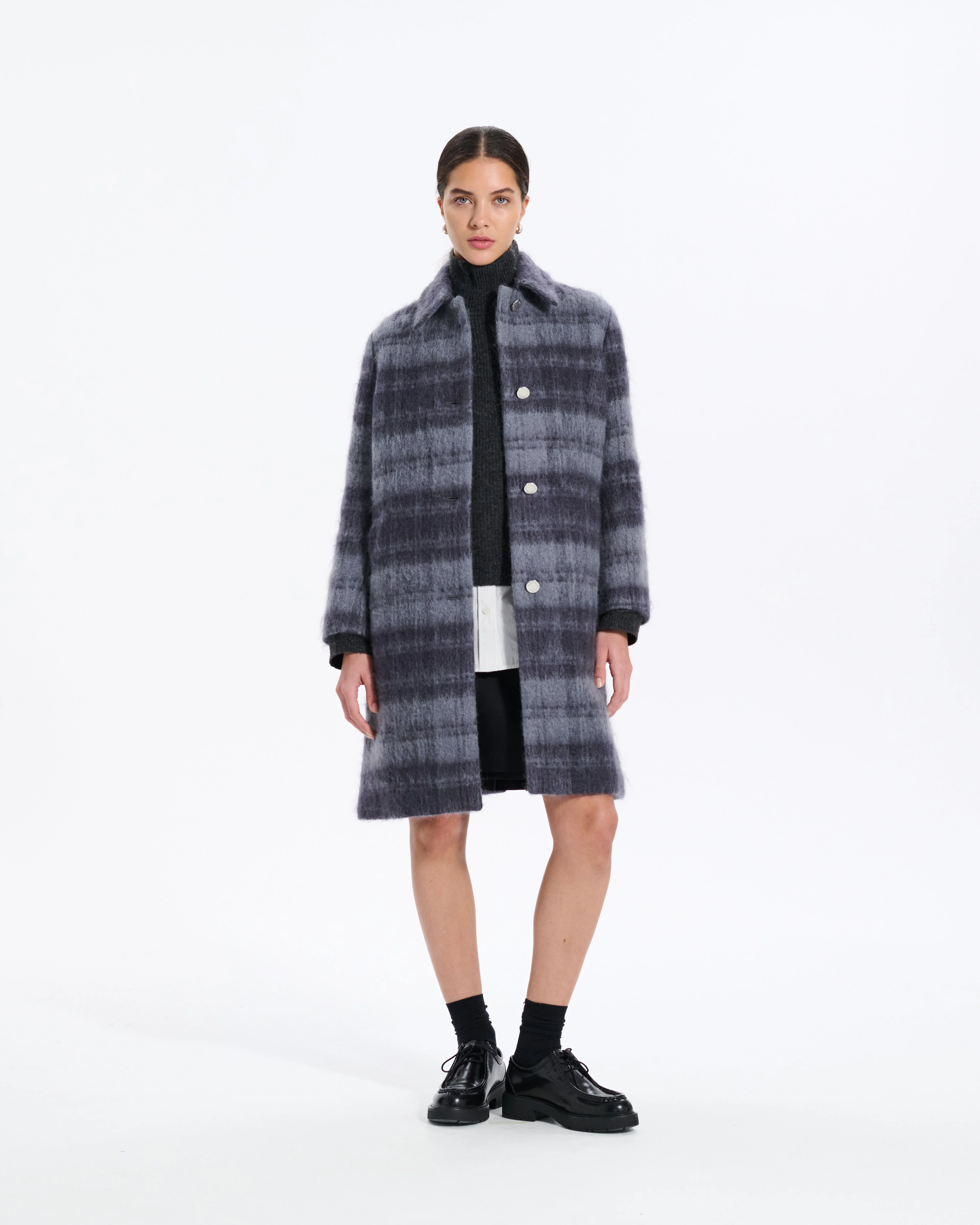 Mackintosh's signature model, the Banton, features a beautifully gentle A-line silhouette, offering a timeless design. This piece is crafted from shaggy tweed, exuding a British ambiance. Made in: Japan Fabric: Item code: OC1399 SIZE & FIT Fit: Regular Model: Thais is wearing a UK size 8. Height: 176cm. Dress size: UK 6. Bust: 77cm. Waist: 58cm. Hips: 87cm FABRIC & CARE Composition: 57% WOOL, 41% MOHAIR, 2% NYLON