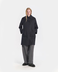 With a classic and minimalist Hiyoku design, the Banton coat offers a stylish and elegant piece without missing out on maximum functionality. The coat has been crafted with care, featuring our traditional rubberised fabric for a complete waterproof finish, with underarm eyelets for breathability and hand-taped seams to keep the weather out. Made in: Handmade in Scotland Fabric: Rubberised bonded cotton Attributes: Waterproof. Underarm eyelet ventilation. Hand-taped seams. Chin strap Detailing: Minimalist Hiyoku-style design. Classic A-line shape. Buttons with branded logo Item code: RO6549 SIZE & FIT Fit: Regular Model: Holly is wearing a UK size 8. Height: 179cm. Dress size: UK 6. Bust: 79cm. Waist: 60cm. Hips: 89cm FABRIC & CARE Composition: 100% Cotton Bonded Washing: Spot clean only. Do not machine wash. Do not dry clean. Day to day: Small marks can be removed with soap and water. Apply soap with a soft brush only. Never use spirit or any other chemical cleaners.