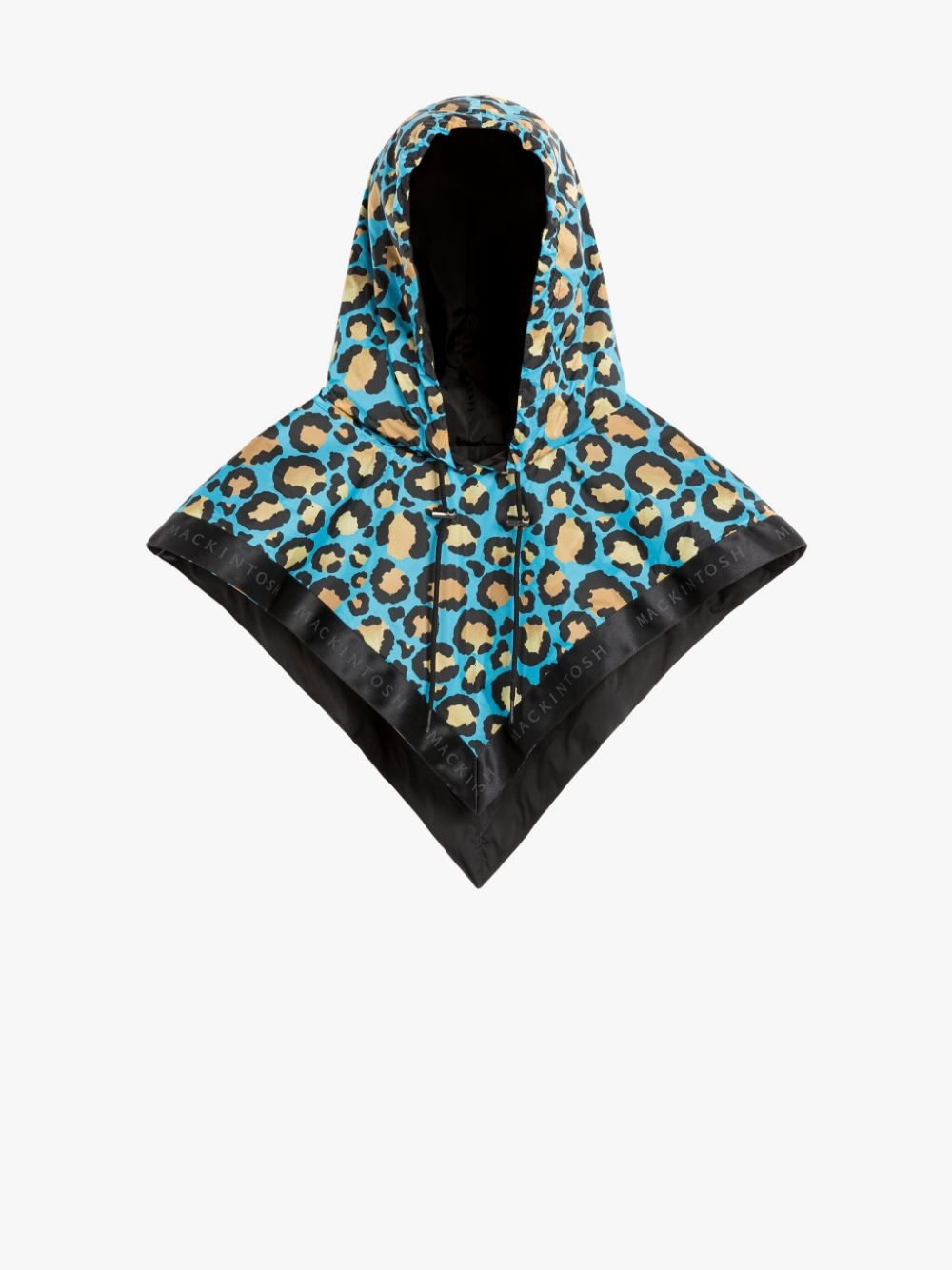 Description Worn alone or paired with a coat, the leopard-print Casey hood offers additional protection from the elements. It's cut from water-repellent nylon with drawstring toggles. In a nod to Mackintosh's signature taped seams, it's bordered with a logo-print trim. Details & Care Casey Blue Leopard Nylon Hood Cornflower blue, light brown, black Genderless design Water-repellent Drawstring hood with toggle adjusters Contrast logo-print hem Contrast lining 100% nylon Dry clean only Made in the United Kingdom Style ID: MO7966 Model: CASEY ACC-CA01 AHT01/ACL02