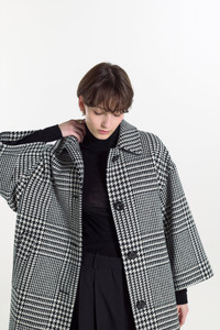 The Collin is an overcoat that offers a classical impression with its wide sleeves and cocoon silhouette. This piece features a minimalist design, accented by voluminous and elegant buttons that truly stand out. Made in: Japan Attributes: Cropped sleeve Detailing: Button closure Item code: OC1409 FABRIC & CARE Composition: 100% Wool
