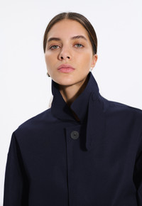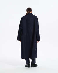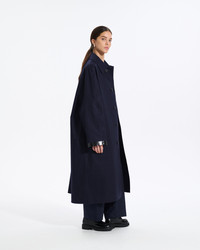 An ode to the best of British craftsmanship, Studio Nicholson’s collaboration with Mackintosh sees Ettrick produced as a contemporary update on the classic knee-length raincoat. Handcrafted in Scotland by a skilled artisan, it’s made from Mackintosh’s signature rubberised bonded cotton: a hard-wearing fabric comprised of two layers of high-quality cotton bonded together to create a fully waterproof finish. Shaped to a generous oversized frame that recalls SN’s modern approach to cut, Ettrick is finished with black hand-taped seams and a button-fastening throat guard for extra protection from the elements. Made in: Handmade in Scotland Fabric: Rubberised bonded cotton Attributes: Waterproof. Windproof. Taped seams Detailing: Button-fastening throat guard. Concealed button placket. Welt pockets. Hand-taped seams. Back vent Item code: RO6727 SIZE & FIT Fit: Oversized Model: Thais is wearing a UK size M. Height: 176cm. Dress size: UK 6. Bust: 77cm. Waist: 58cm. Hips: 87cm FABRIC & CARE Composition: 100% Cotton Bonded Washing: Spot clean only. Do not machine wash. Do not dry clean. Day to day: Small marks can be removed with soap and water. Apply soap with a soft brush only. Never use spirit or any other chemical cleaners.