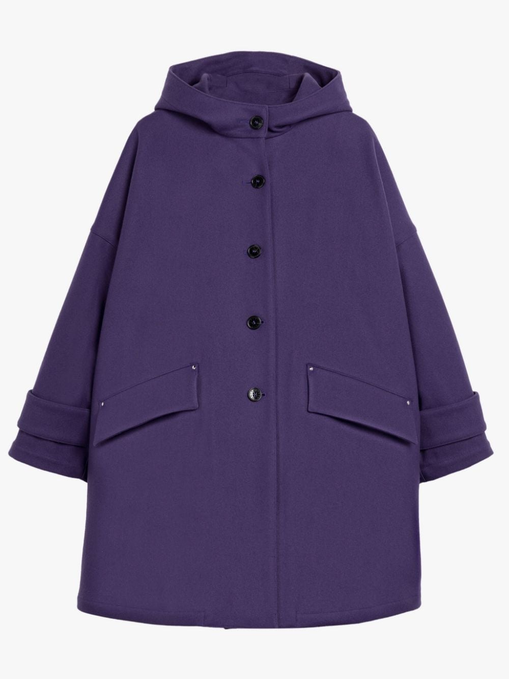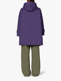 Description The Humbie coat is cut from purple wool to a wide A-line silhouette with a hood and chunky button adjusters at the cuffs. Crafted at our Nelson factory, it's fitted with practical details like the subtle tab for attaching one of the collection's liner vests. Size & Fit Model wears size UK8 Model measures: chest 32”/81cm, height 70”/176cm, waist 24”/28cm, hips 35”/88cm Details & Care Humbie Hood Purple Wool Overcoat Hooded Throat latch with button fastening Long sleeves with button adjusters at cuffs Flap side pockets Internal tab with press-stud fastening for interchangeable liner vest Button front fastening Oversized fit 100% wool Dry clean only Made in the United Kingdom Style ID: MO7276 Model: HUMBIE HOOD 2K11