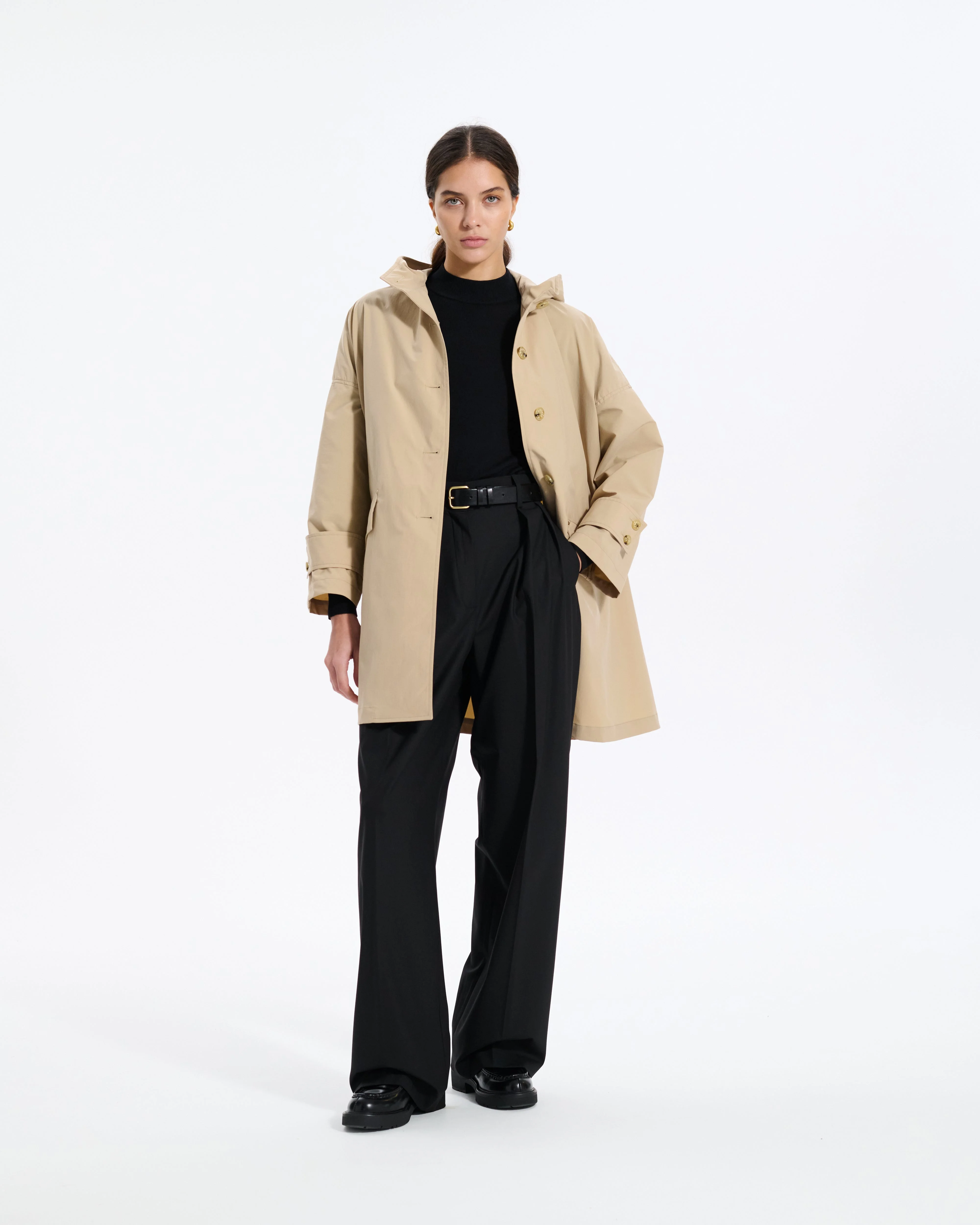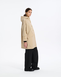 This version of the Humbie coat offers all of the chic design of the classic Humbie model, but with drop shoulder styling and a clean, hooded design for an elegant twist that also performs perfectly on rainy days. With its highly water-repellent fabric, made from 60% recycled materials, the short-style coat is lightweight yet with a structured firmness that flatters. Fabric: 60% recycled polyester Attributes: Water repellent fabric. 60% recycled materials. Chin strap Detailing: Drop shoulder style. Clean, hooded design. Lightweight material Item code: MO9170 SIZE & FIT Fit: Oversized FABRIC & CARE Composition: 100% PE (RECYCLE 60%) Washing: Dry clean only Day to day: Do not machine wash. Do not bleach. Do not tumble dry. Warm iron over damp cloth. Gentle dry clean. Do not wet clean