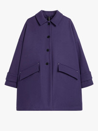 Description A modern approach to the Mackintosh archives, the Humbie coat is cut from purple wool to a wide A-line silhouette with chunky button adjusters at the cuffs. It's immaculately constructed in the United Kingdom and fitted with design signatures – spot the internal phone pocket and tab for attaching a liner vest. Size & Fit Model wears size UK8 Model measures: chest 32”/81cm, height 70”/176cm, waist 24”/28cm, hips 35”/88cm Details & Care Humbie Purple Wool Overcoat Point collar Detachable throat latch with button fastening Long sleeves with button adjusters at cuffs Flap side pockets Internal tab with press-stud fastening for interchangeable liner vest Internal phone pocket with button fastening Button front fastening Oversized fit 100% wool Dry clean only Made in the United Kingdom Style ID: MO7273 Model: HUMBIE 2K11