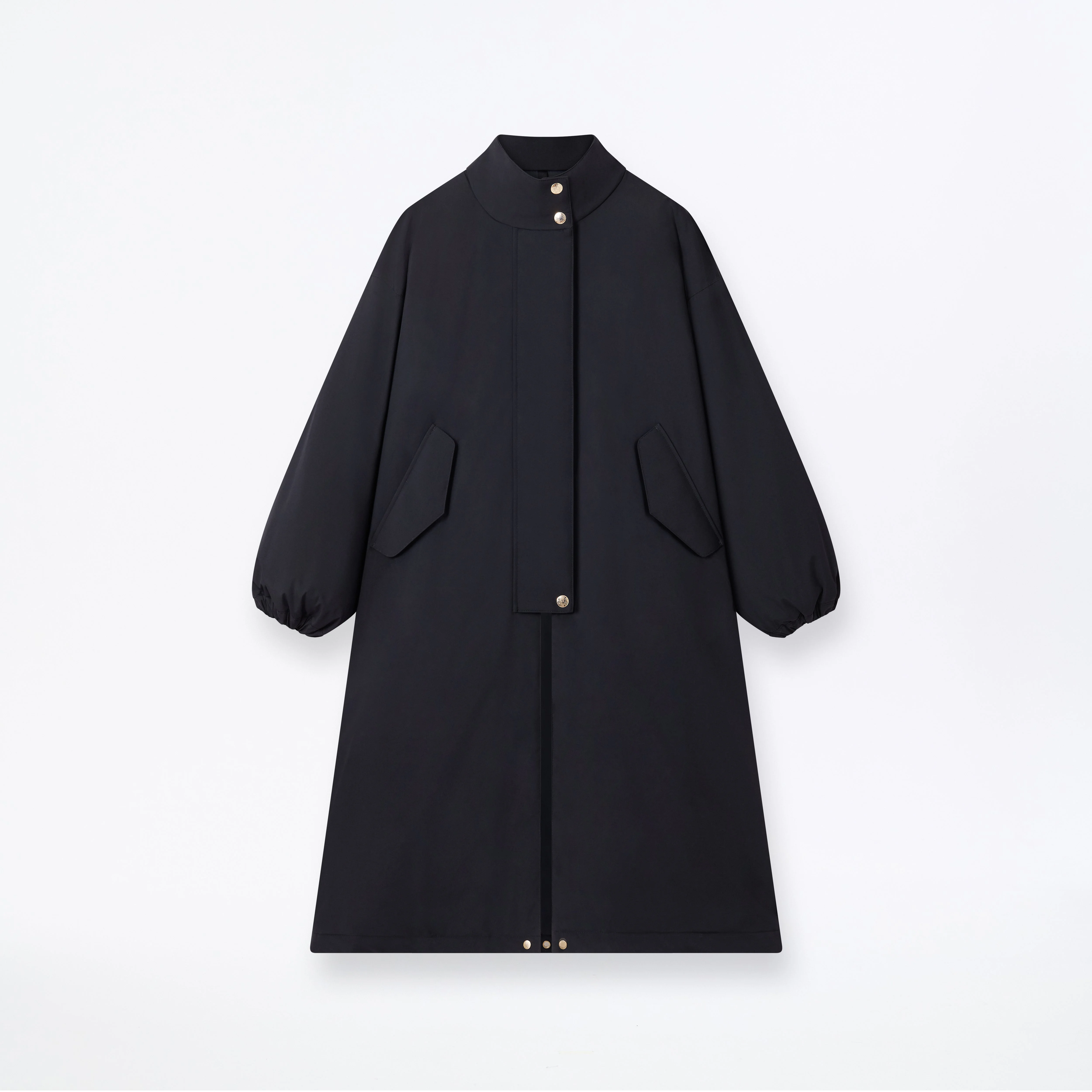 The Raintec Skye Stand Collar Thindown Coat is a stand-collar down coat with dropped shoulders. Inspired by the military M-65 coat, this piece is designed with a feminine A-line silhouette and puff sleeves. It's a 2-way item that can also be worn as a blouson by adjusting the length. This coat combines functionality and design, using a moisture-permeable and waterproof outer fabric and THINDOWN for excellent insulation. Made in: Japan Fabric: 100% recycled nylon Attributes: Insulated. Waterproof. Windproof. Breathable Detailing: Flap pocket. Thindown insulation. Puff sleeves Item code: OC0470 SIZE & FIT Fit: Regular FABRIC & CARE Composition: 100% Recycled Nylon Washing: Dry clean only