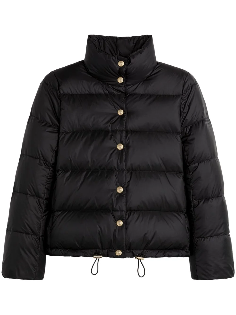 Rona jacket Highlights - Black - Duck down - Padded design - Press-stud fastening - High neck - Two side slit pockets - Drawstring hem Imported Composition Outer: Nylon 100% Lining: Duck Down 100% SIZE & FIT Measurement SLEEVE LENGTH 24.6 in(62.5 cm) LENGTH 23.22 in(59 cm) WAIST 38.97 in(99 cm) BUST 38.97 in(99 cm) Shoulder Width 14.96 in(38 cm)