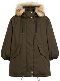 Skye parka Highlights - Olive green - Duck down - Drawstring hood - Faux fur-trimmed hood - Front button fastening - Drawstring waist - Two side flap pockets - Drawstring hem - Elasticated cuffs Imported Composition Outer: Artificial Fur 100%, Polyester 90%, Wool 10% Lining: Duck Down 100% SIZE & FIT Measurement SLEEVE LENGTH 24.6 in(62.5 cm) LENGTH 30.7 in(78 cm) BUST 43.3 in(110 cm) Shoulder Width 14.96 in(38 cm)