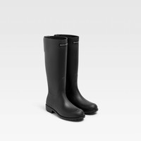 Sleek enough that they're suited to the city as well as the country, the Wiston wellington boots are a timeless way to take on the elements. The tall silhouette is crafted from black waterproof rubber, detailed with discreet logo plaques and snap button tabs, then set atop a gripped sole that ensures traction on slippery surfaces. Fabric: 100% PVC Attributes: Round toe. Rubber snap button tabs. Gripped sole Item code: FW0124