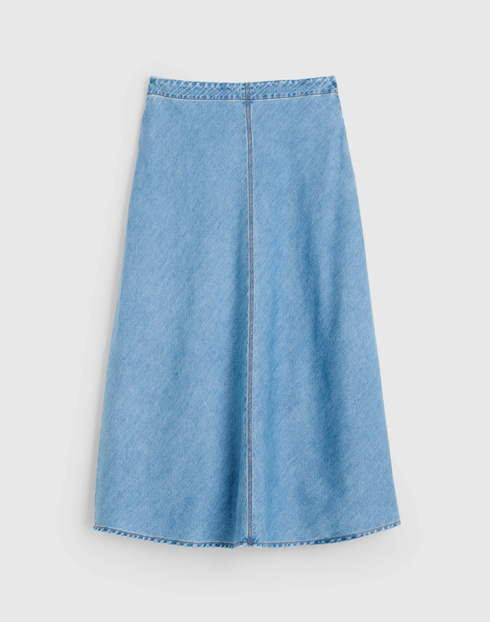 Crafted from our soft and drapey Airy Denim, this simple midi skirt is cut on the bias to create a flattering, flowy silhouette. Ideal for those days when you need something easy yet elevated—especially paired with our matching top. - 31" long. - 65% cotton/35% lyocell. - Do Well: for each item made at the Fair Trade Certified™ factory, we contribute to a Community Development Fund managed by the workers. - Machine wash. - Imported. - Select stores. - Item NZ052
