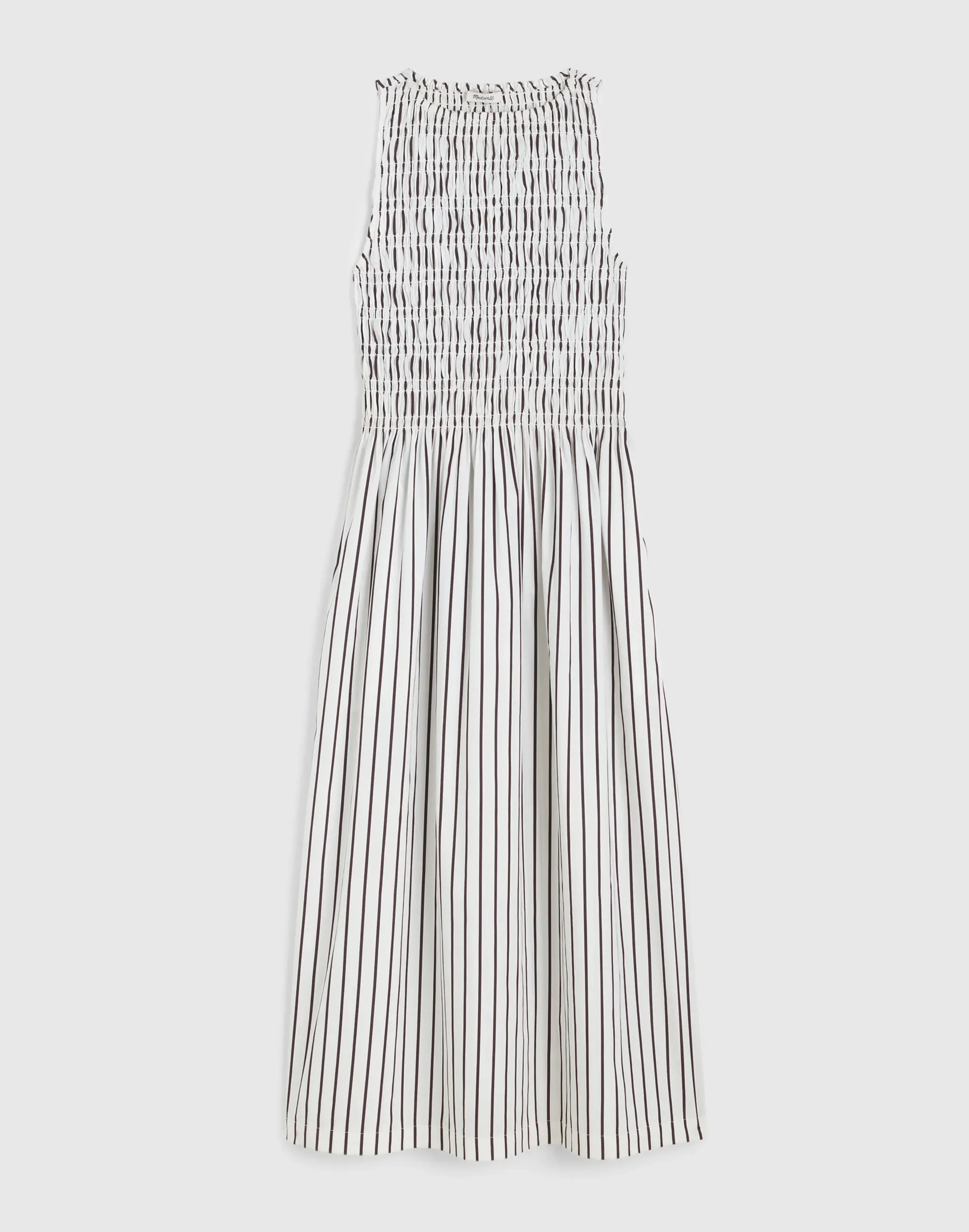 Our best-selling midi dress, coming in striped cotton poplin. Its boat neckline, smocked bodice and swingy A-line skirt offers all-day comfort—plus, it has pockets. - Regular fit. - Falls 49" from high point of shoulder (based on size M). - 100% cotton. - Machine wash. - Imported. - Select stores. - Item NZ960
