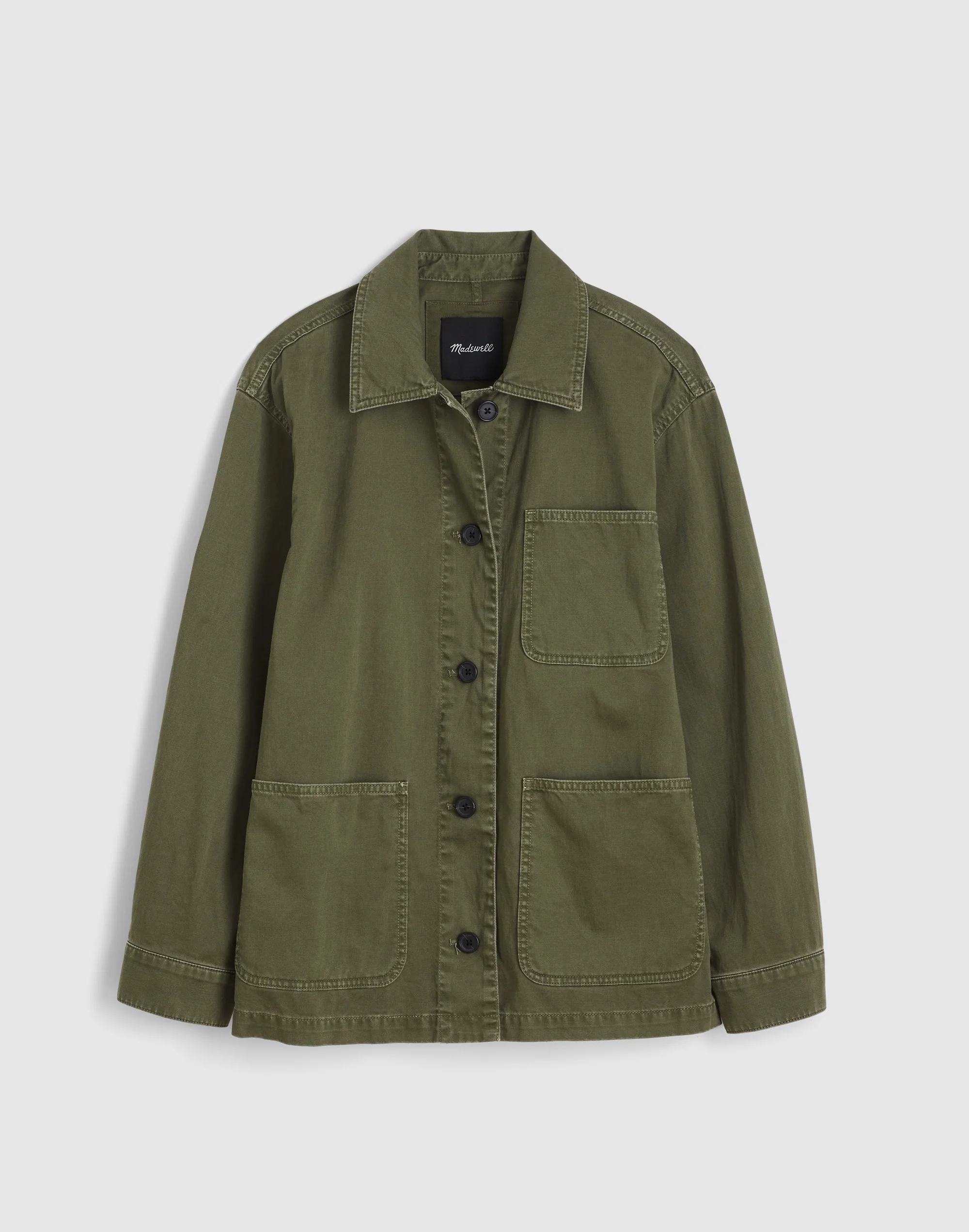 Crafted from a cotton twill, this chore jacket has a classic point collar, patch pockets and buttons along the front. Relaxed and easy, it's an essential layering piece you'll reach for as the seasons transitions. - Regular fit. - Body length: 28". - 100% cotton. - Machine wash. - Imported. - Item NZ790