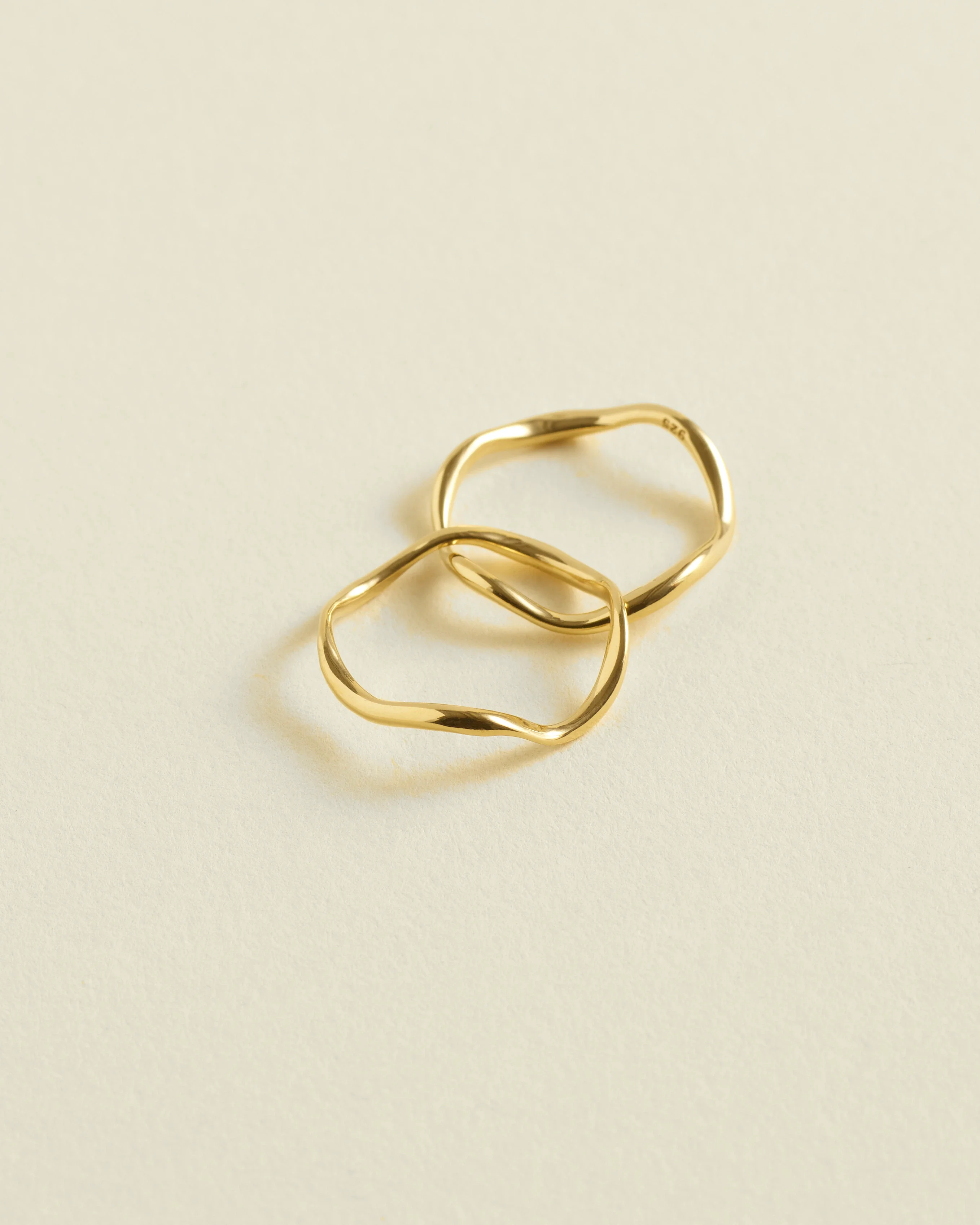 Crafted from 14K gold over sterling silver, our Demi-Fine pieces are future keepsakes meant to be layered and worn every single day. This stacked ring set features two minimal, sculptural bands. - 100% recycled sterling silver. - Do Well: crafted from recycled factory scrap metals that may otherwise go to waste. - Nickel-safe. - Imported. - Item NZ814