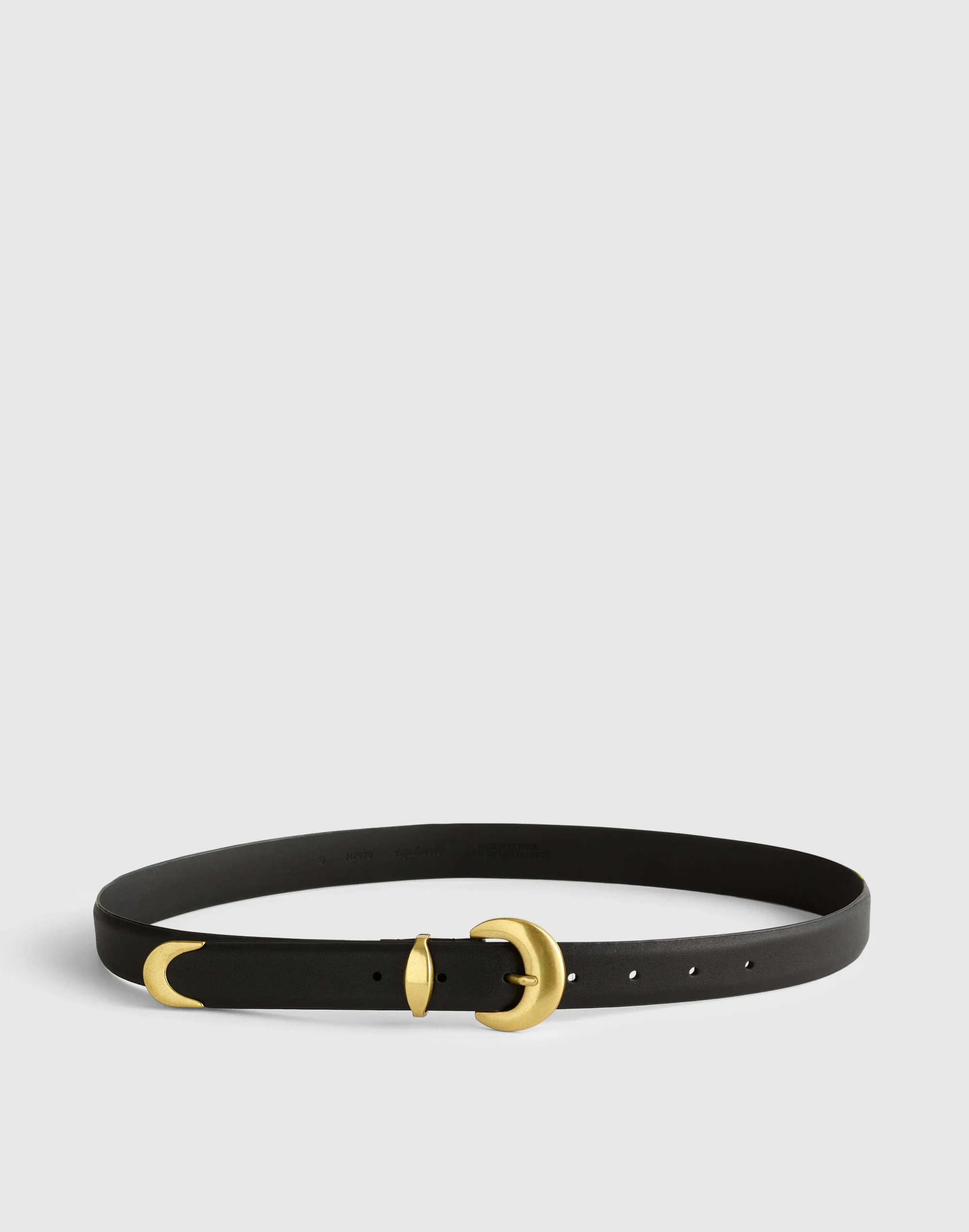 Crafted from smooth leather with a three-piece metal hardware design, this wide belt features a domed buckle. Pair it with your favorite jeans or trousers for an effortlessly cool feel. - Meant to be worn at the waist. - Width: 1". - 100% leather. - Spot clean. - Imported. - Select stores. - Item NZ979