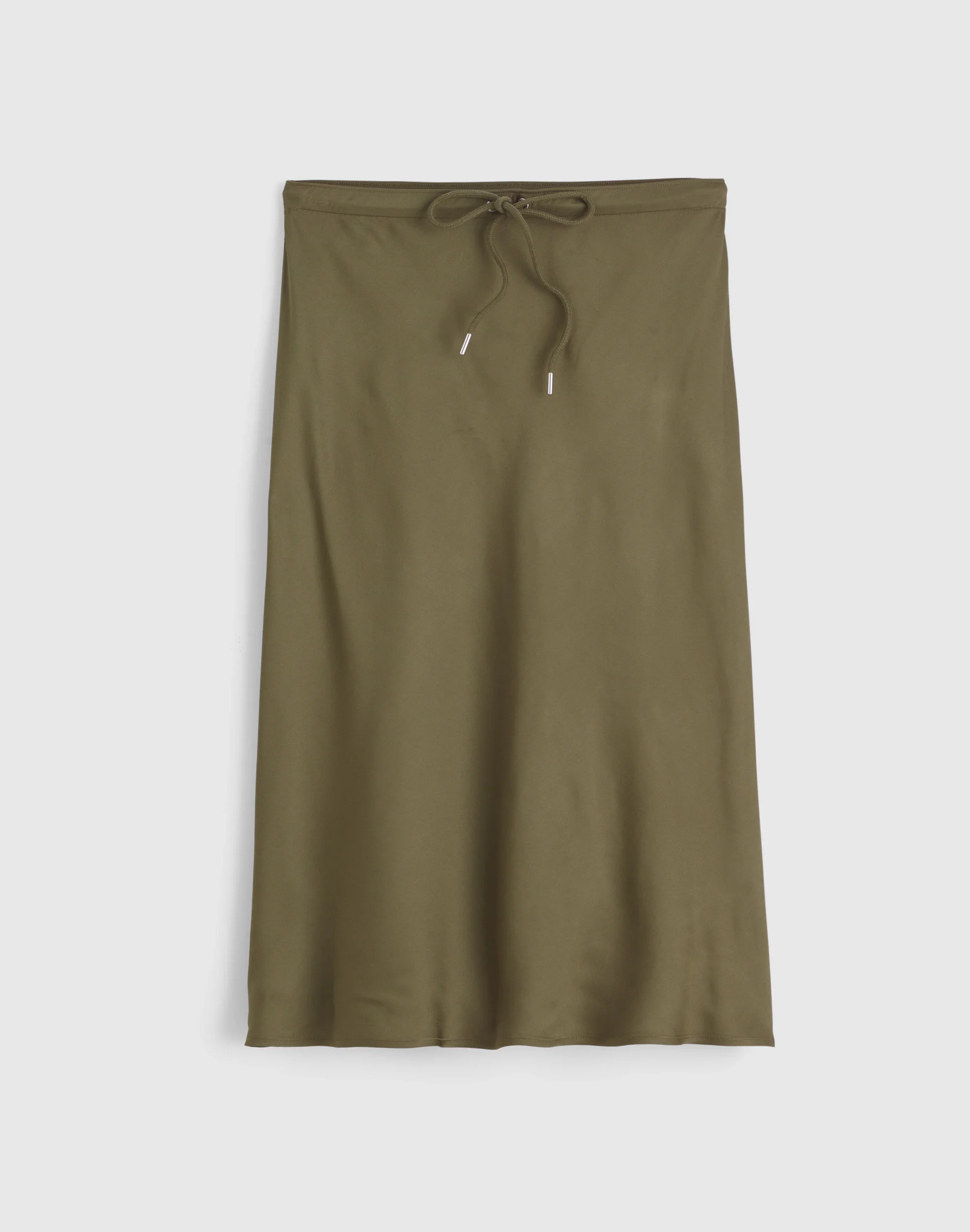 Coming in satin-back crepe, this midi skirt is cut on the bias for a beautiful drape and features an adjustable drawstring waist. Easy to dress up or down, this will become your go-to for day and night. - 32" long (based on size M). - 100% viscose. - Machine wash. - Imported. - Select stores. - Item NZ469