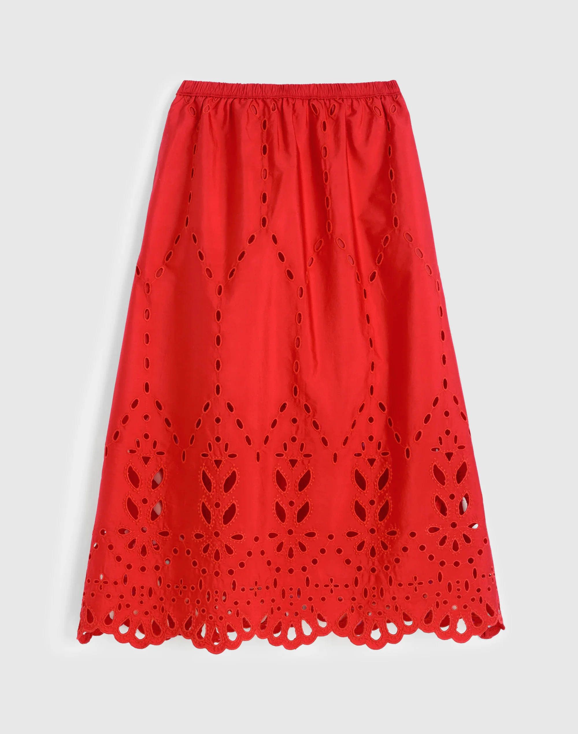 Crafted from 100%, mid-weight cotton poplin, this midi skirt features allover tonal embroidery and a delicate scalloped hem. It has an elasticized waist, side-seam pockets and pairs perfectly with our matching sleeveless top. - 33" long (based on size M). - 100% cotton. - Machine wash. - Imported. - Select stores. - Item NZ494