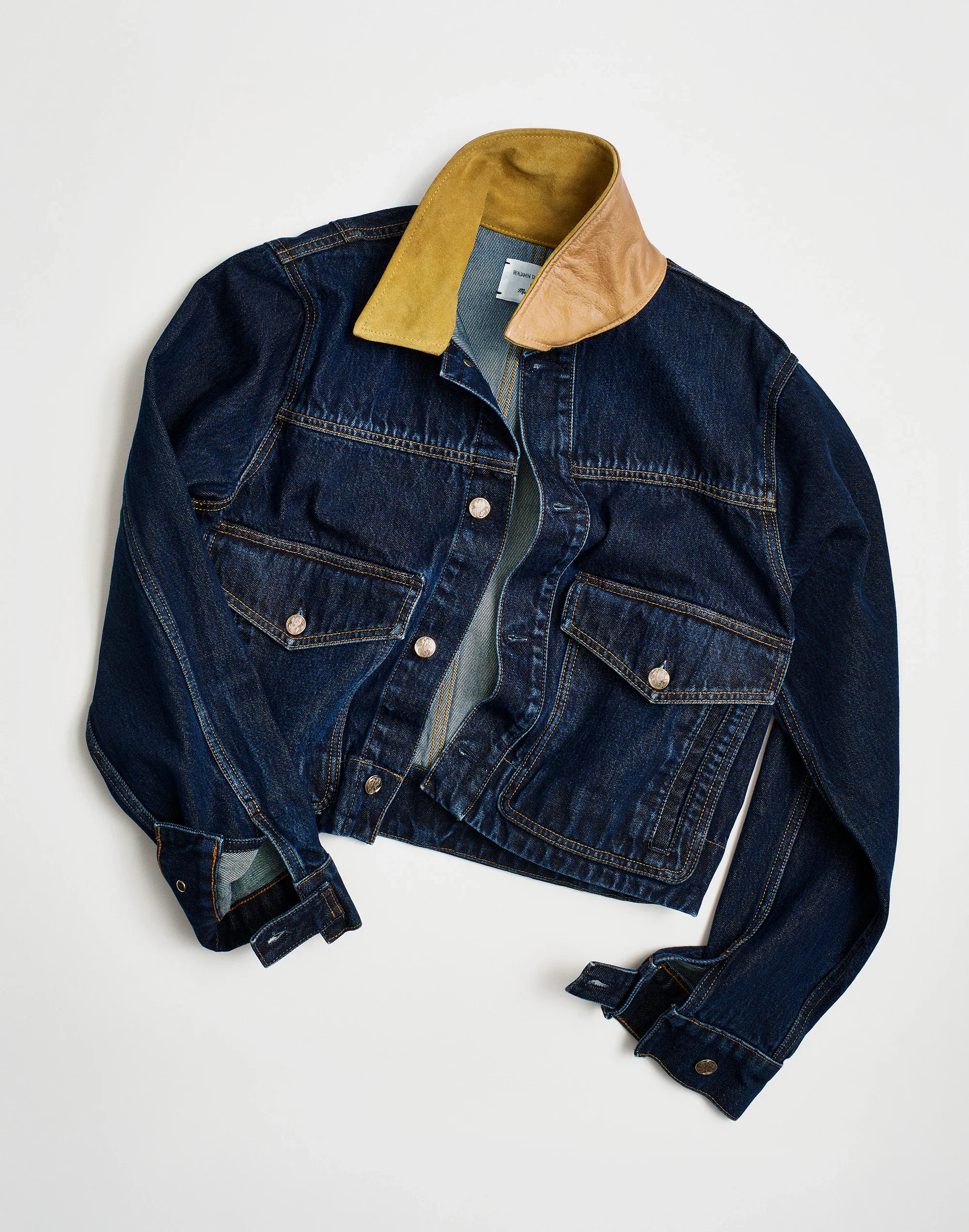 A limited-edition denim capsule designed by Benjamin Talley Smith and handcrafted by artisans in Los Angeles using imported fabric. This vintage workwear-inspired jacket features a shrunken silhouette, a suede collar and multiple pockets. Finished with maze-inspired buttons. - Regular fit. - Body length: 20 1/4". - 100% cotton. - Machine wash. - Imported. - Select stores. - Item NZ172