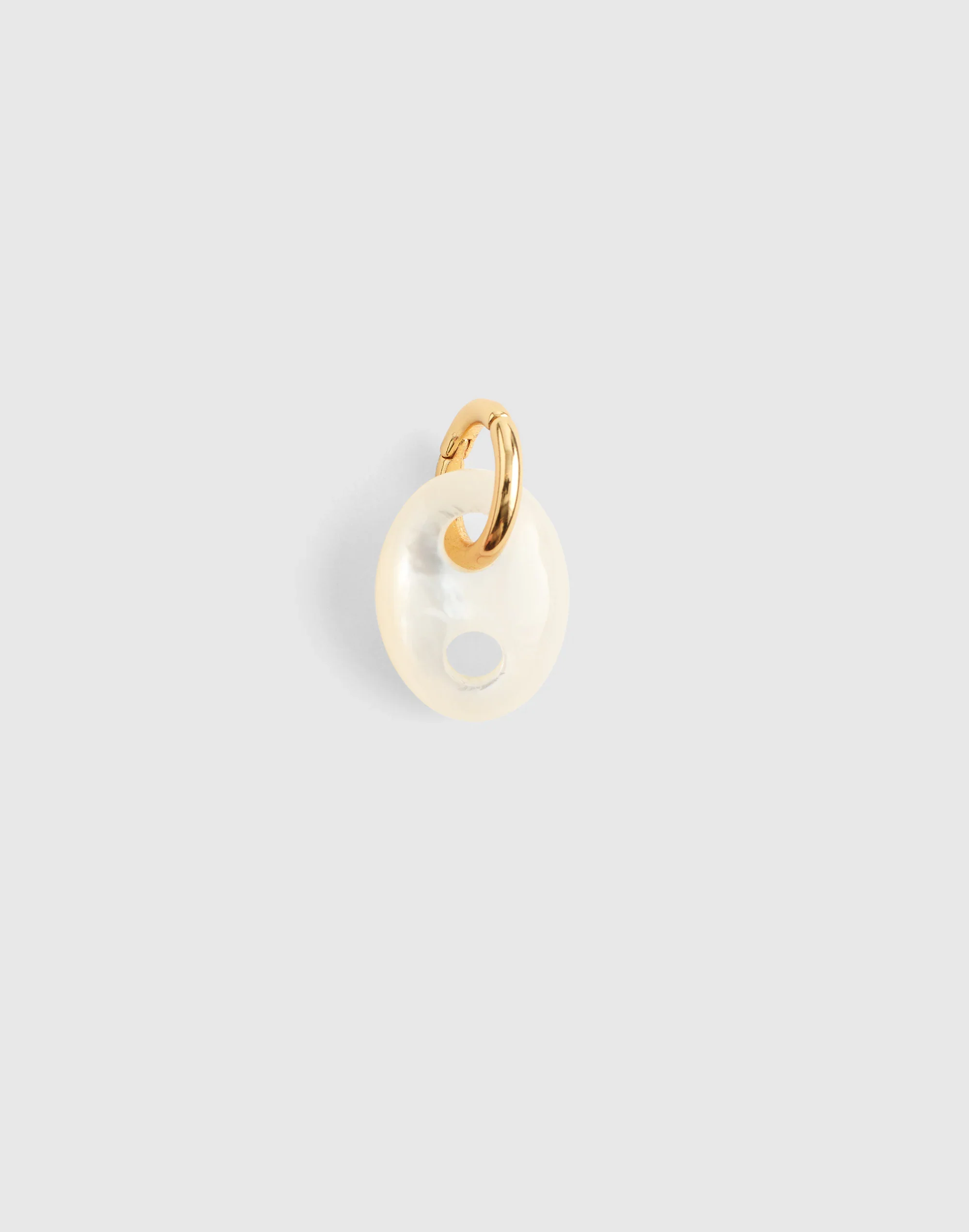 Coming in a mix of metal and genuine mother-of-pearl, this link-shaped charm adds a modern touch to any chain. Slip it onto our carabiner or chunky chain-link pieces for the perfect pairing. - 13 4/5 mm x 27 3/5 mm. - Plated brass, mother-of-pearl. - Nickel-safe. - Clean your jewelry after each wearing with a soft cloth. - Imported. - Item NZ806