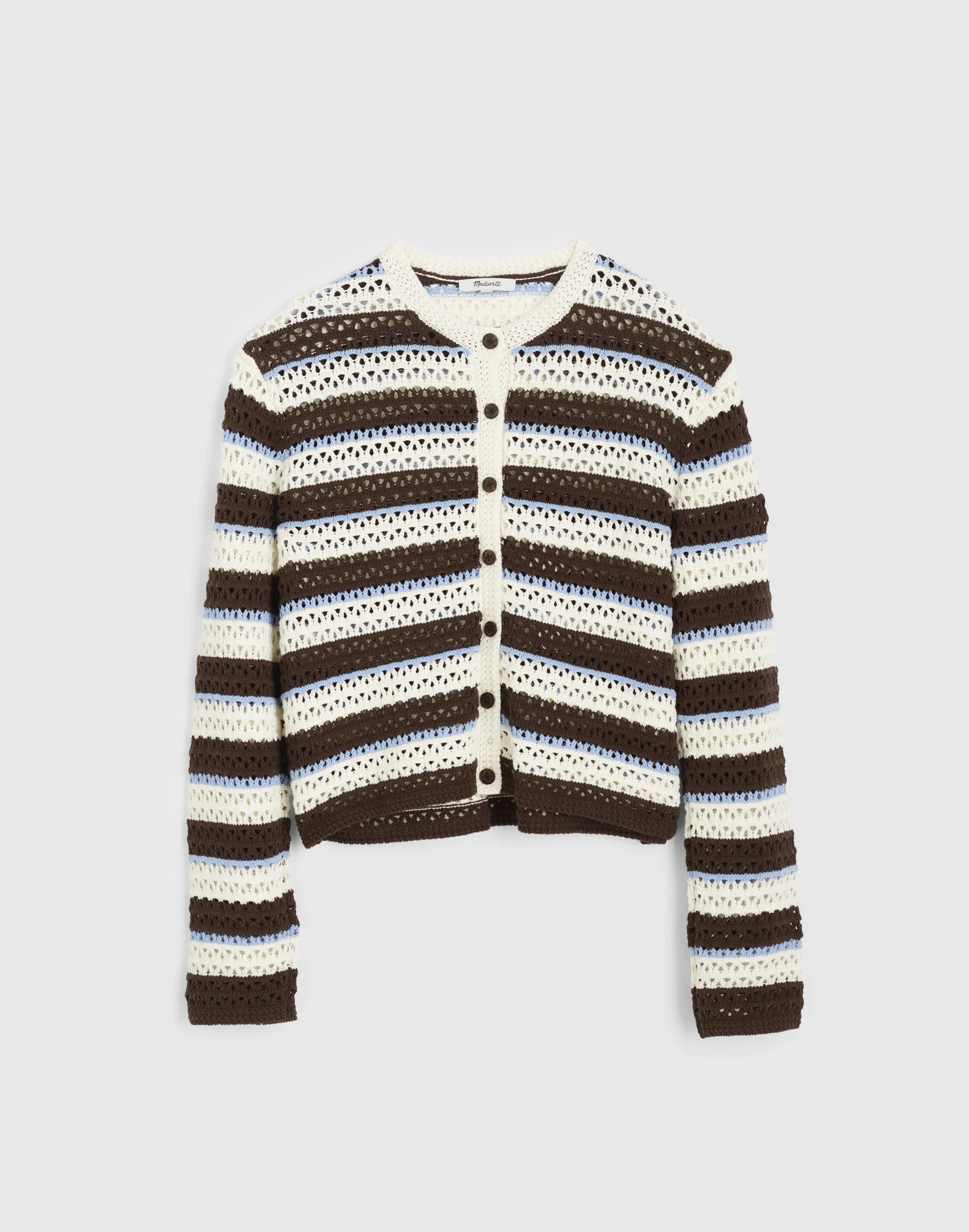 Channel effortless cool in this textural pointelle sweater, made from 100% cotton. Featuring a body-skimming fit and striped open-knit design, its trimmed details and contrasting elevate its everyday appeal. - Relaxed fit. - Crop length: designed to hit low on the ribcage and show a hint of skin. - Body length from high point of shoulder: 19". - 100% cotton. - Machine wash. - Imported. - Select stores. - Item NZ666