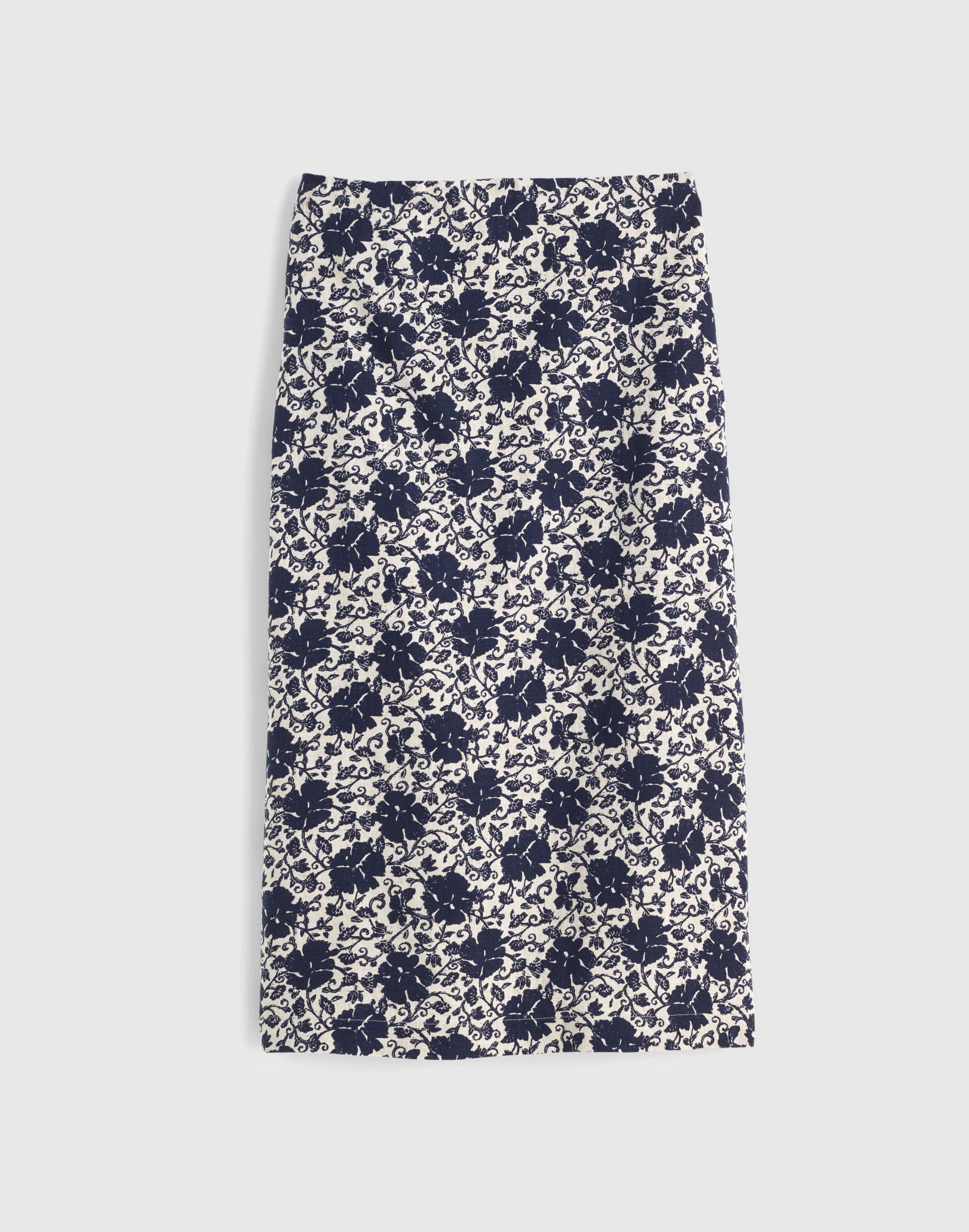 Crafted from 100% linen, this midi skirt features a polished column silhouette. The elasticized waist ensures a comfortable fit, while the subtle floral print offers a new take on neutral dressing. - 32" long (based on size 6). - 100% linen. - Machine wash. - Imported. - Select stores. - Item NZ485