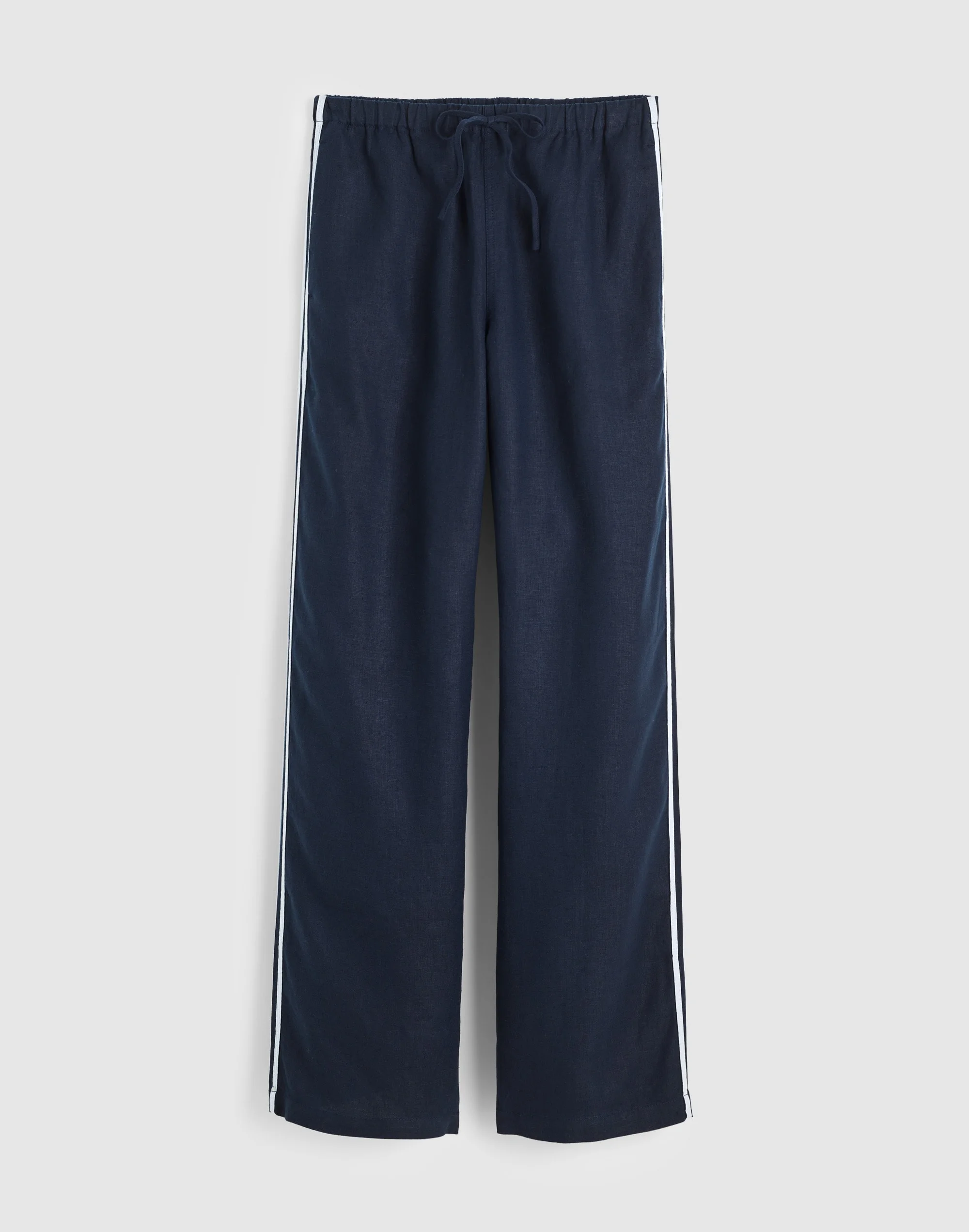 Coming in 100% linen, these warm weather-ready pull-on pants feature an elasticized waist for wear-all-day comfort. With contrast track stripes along the side for a sporty touch, this pair is completed with a drawcord. - 12" rise, 22" leg opening, 30" inseam. - 100% linen. - Machine wash. - Imported. - Item NZ309