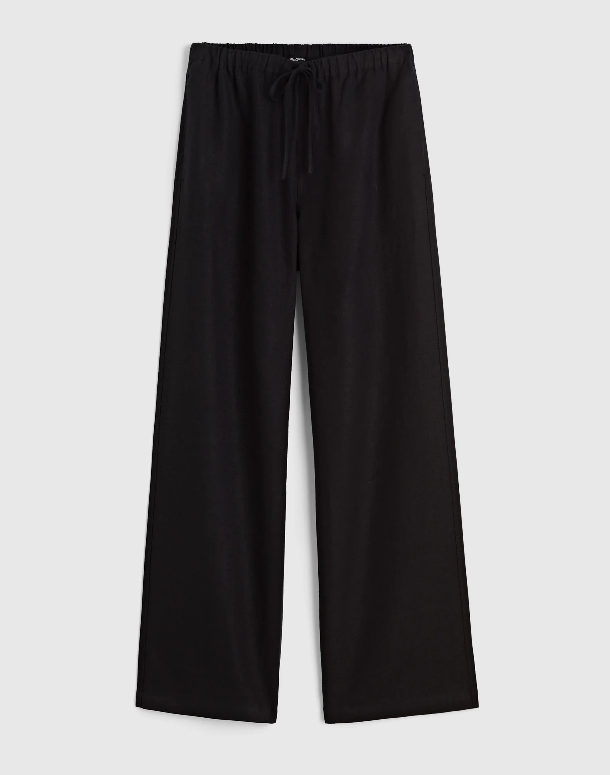 Coming in 100% linen, these warm weather-ready pull-on pants feature an elasticized waist for wear-all-day comfort. Completed with a drawcord, it's the perfect throw on and go style. - 11 1/2" rise, 22" leg opening, 30" inseam. - 100% linen. - Machine wash. - Imported. - Item NZ661