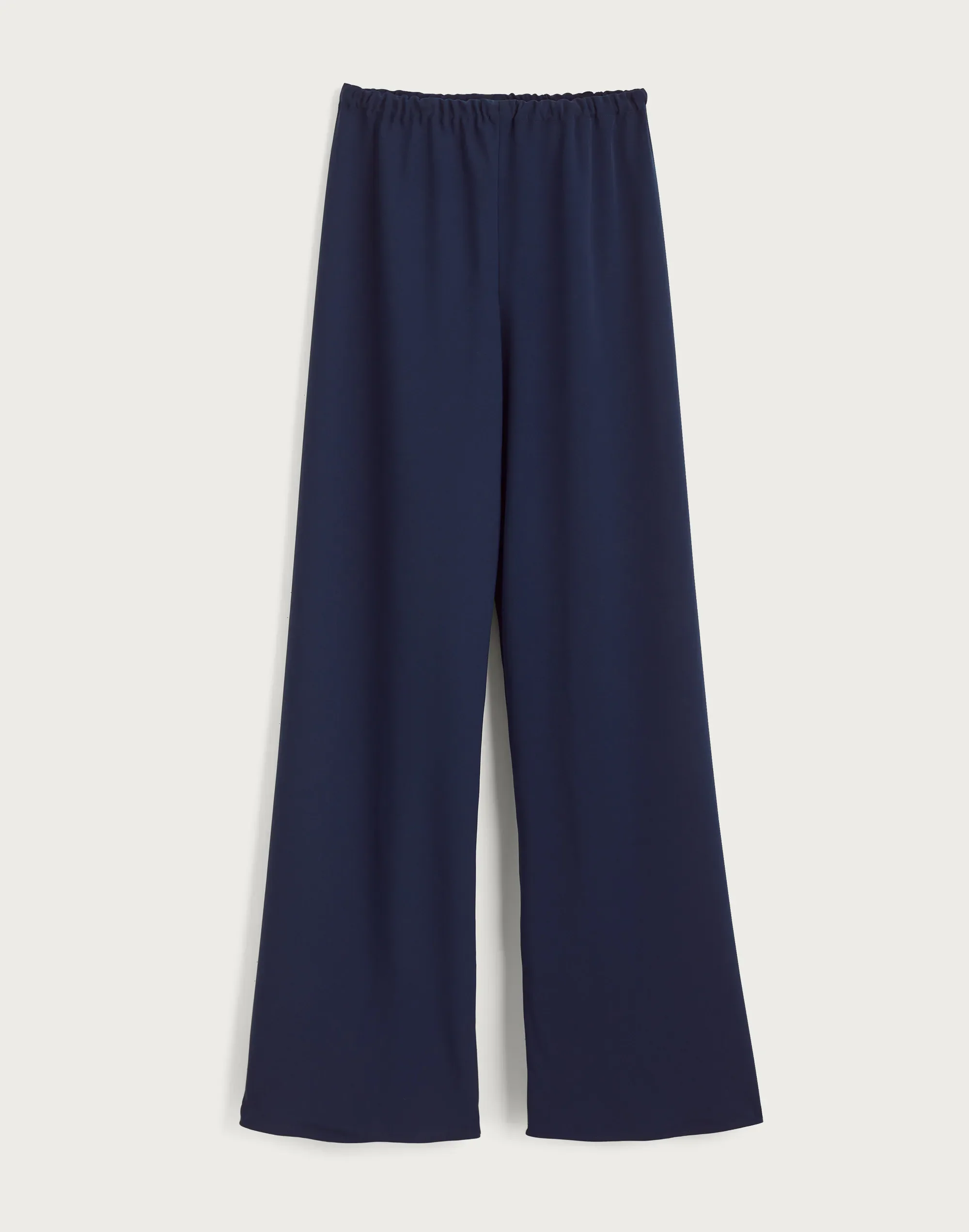 Coming in crepe, these pull-on pants feature a mid-rise, comfortable elastic waistband and wide leg that's cut on a bias for a beautiful drape. For a balanced look, style them with a form-fitting top. - 13 1/4" rise, 30" leg opening, 31" inseam. - 100% polyester. - Machine wash. - Imported. - Select stores. - Item NY506