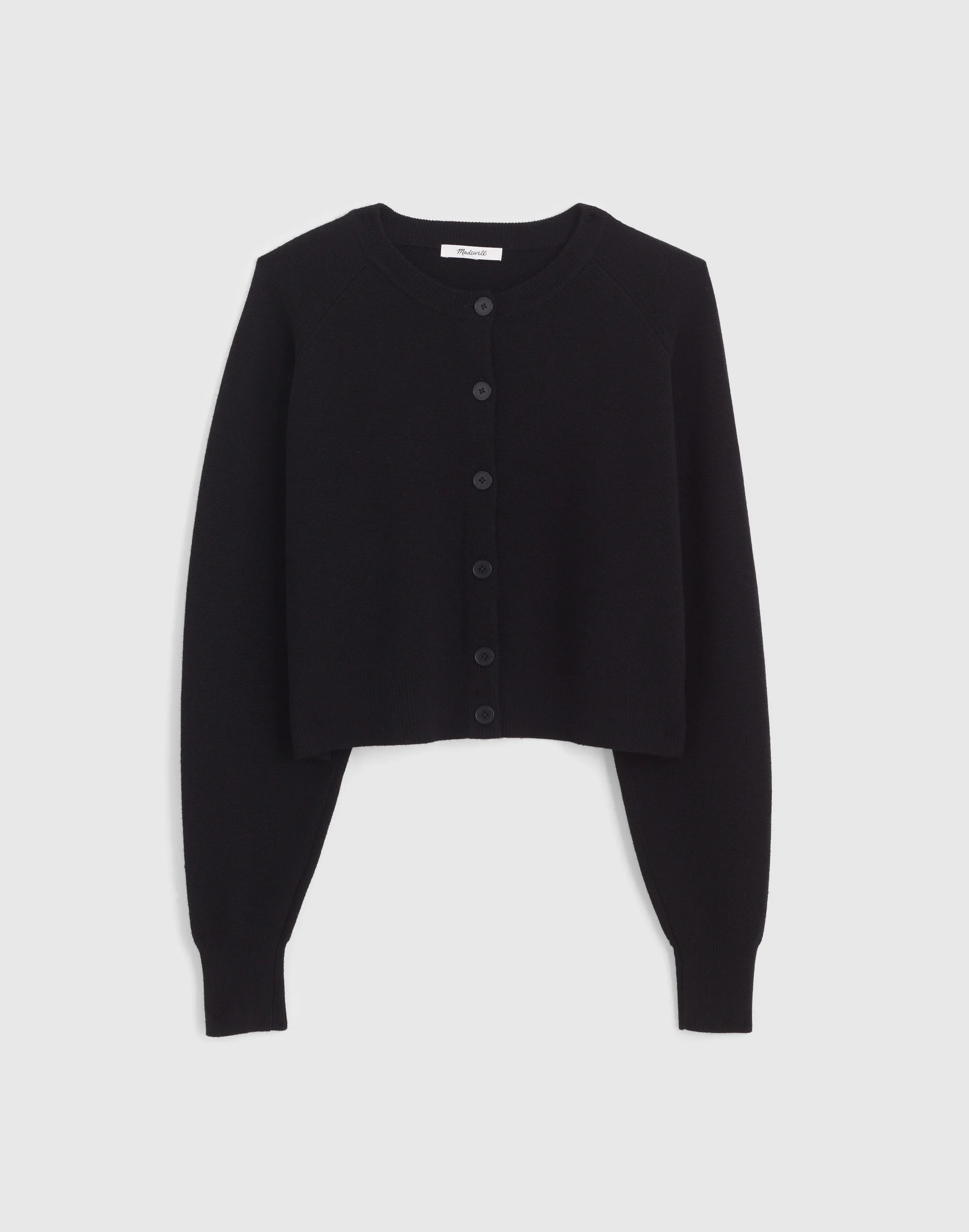 Meet your new go-to cardigan, coming in soft merino wool. Featuring a classic crewneck and raglan sleeves, it's an easy, relaxed layer you can throw on with high-waisted denim. - Relaxed fit. - Crop length: designed to hit low on the ribcage and show a hint of skin. - Body length from high point of shoulder: 19". - Body: 100% merino wool. - Rib: 89% merino wool/10% polyamide/1% elastane. - Dry clean. - Imported. - Item NY464