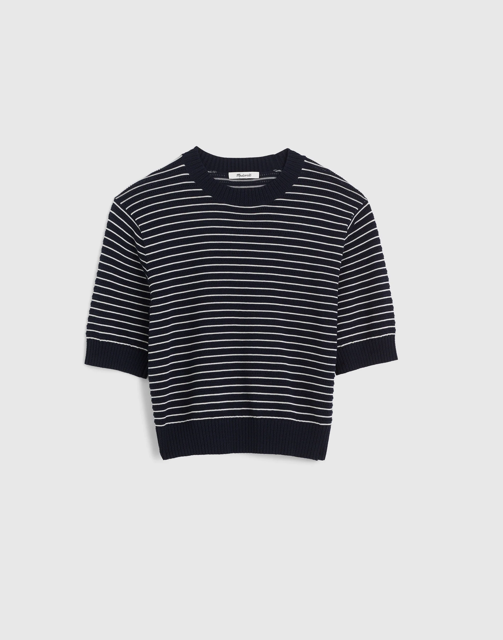 Coming in 100% cotton, this striped crewneck sweater features voluminous short sleeves and a unique textured stitch. It's perfect for pairing with low-rise, baggy jeans for an effortlessly cool look. - Relaxed fit. - Crop length: designed to hit low on the ribcage and show a hint of skin. - Body length from high point of shoulder: 19 3/4". - 100% cotton. - Machine wash. - Imported. - Item NZ325